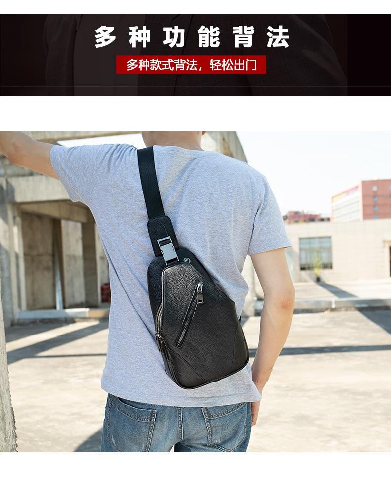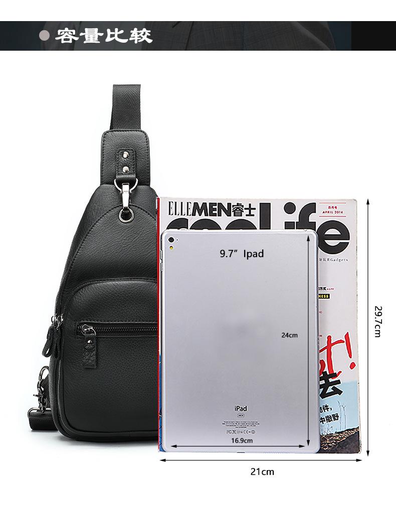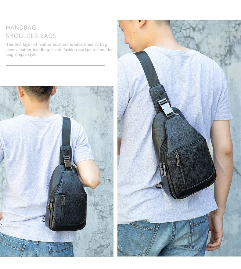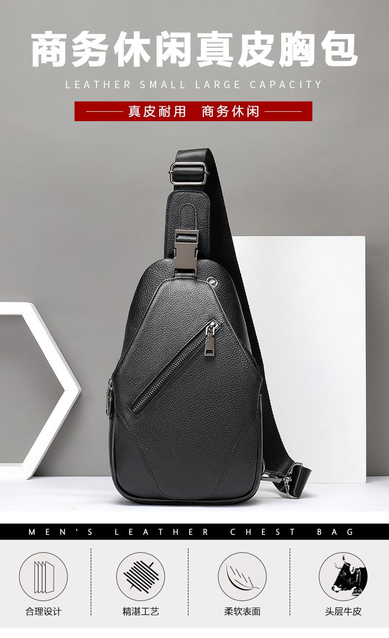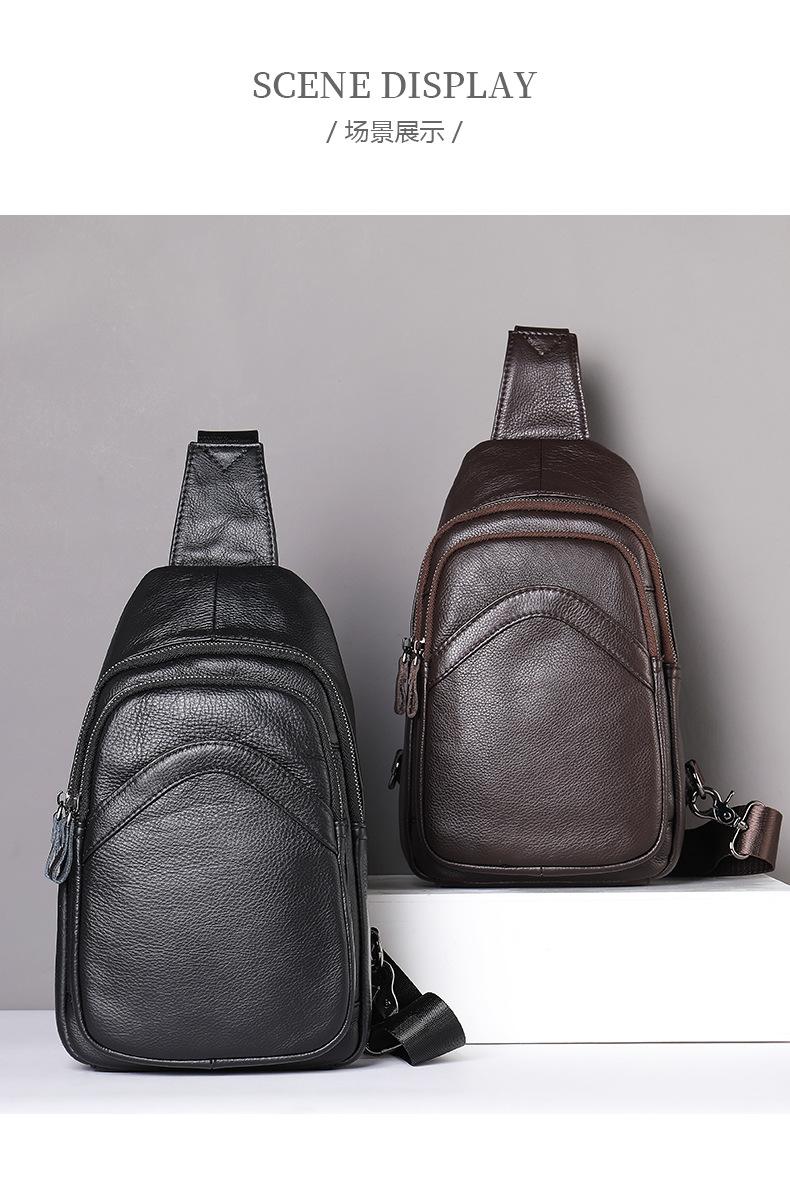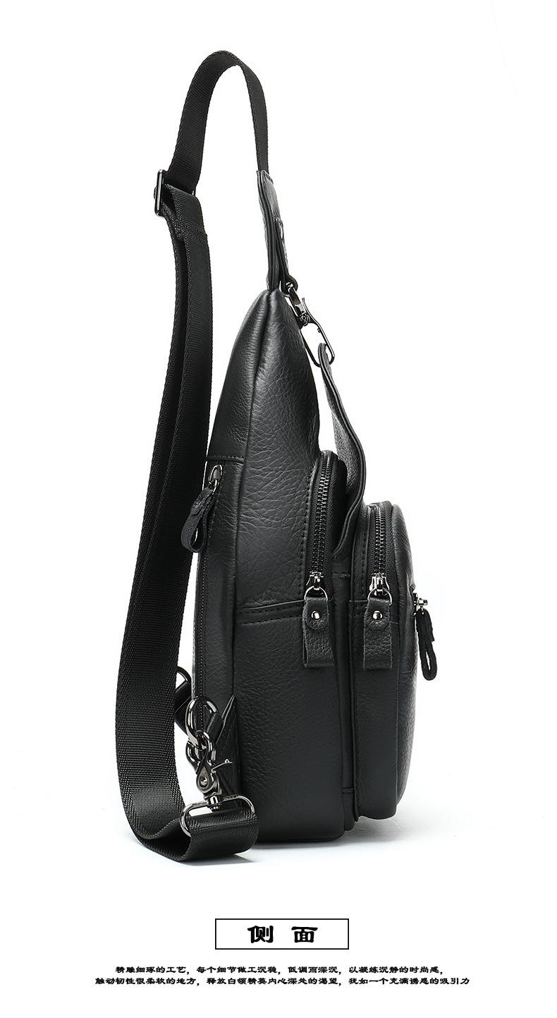 8595 Bolso de Pecho Negro para Hombre Bolso de Pecho de Piel de Vaca de Primera Capa al Mayoreo