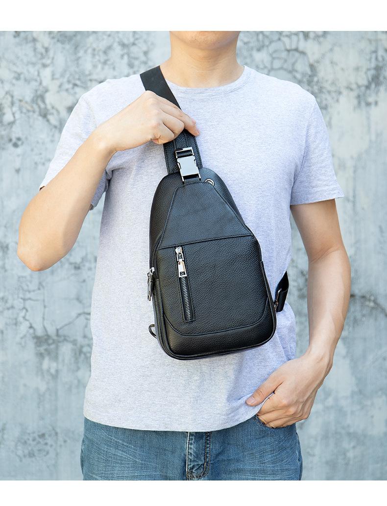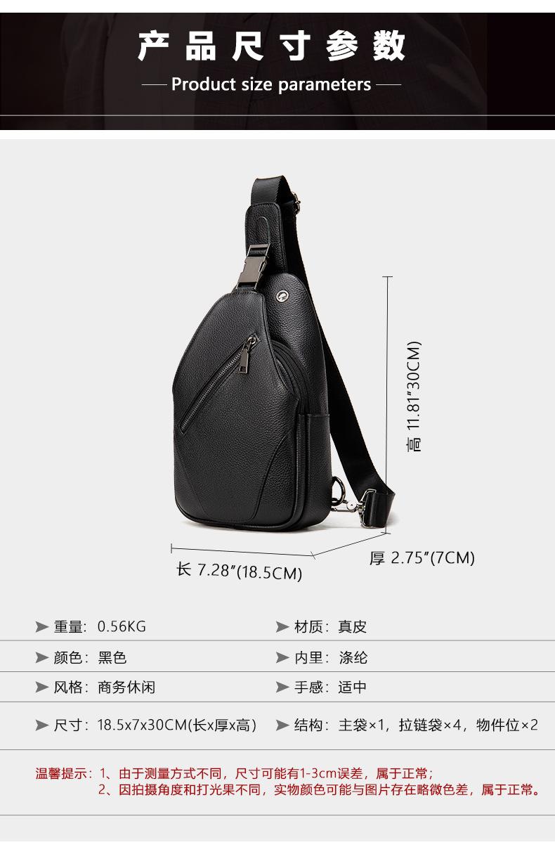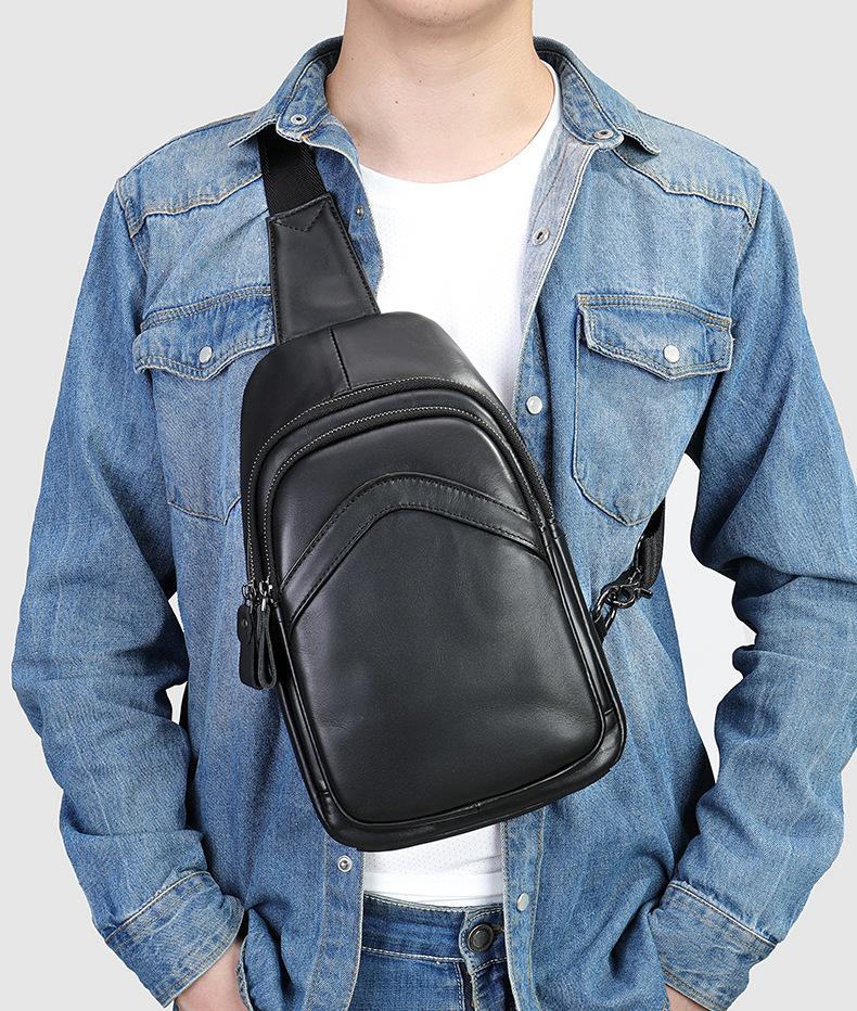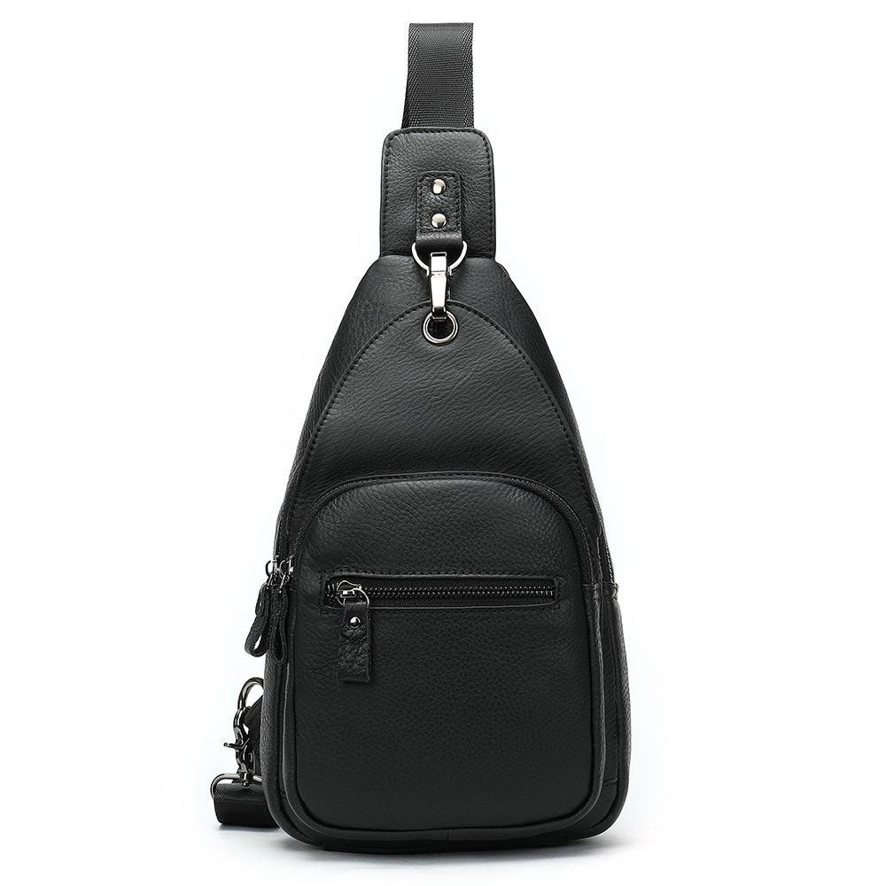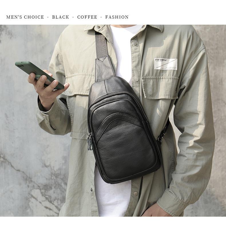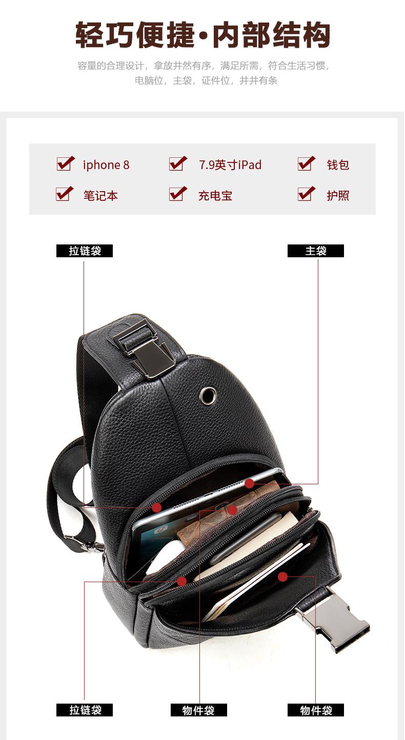 8595 Bolso de Pecho Negro para Hombre Bolso de Pecho de Piel de Vaca de Primera Capa al Mayoreo