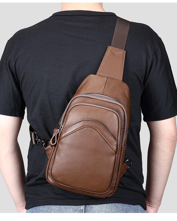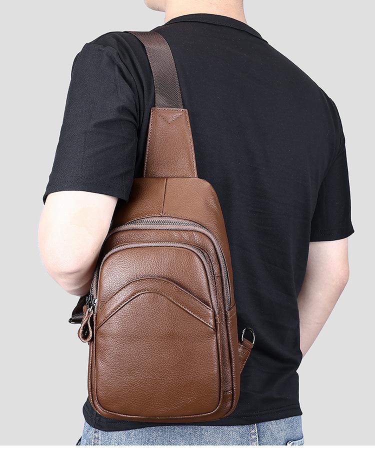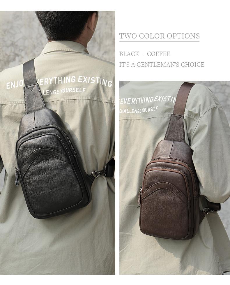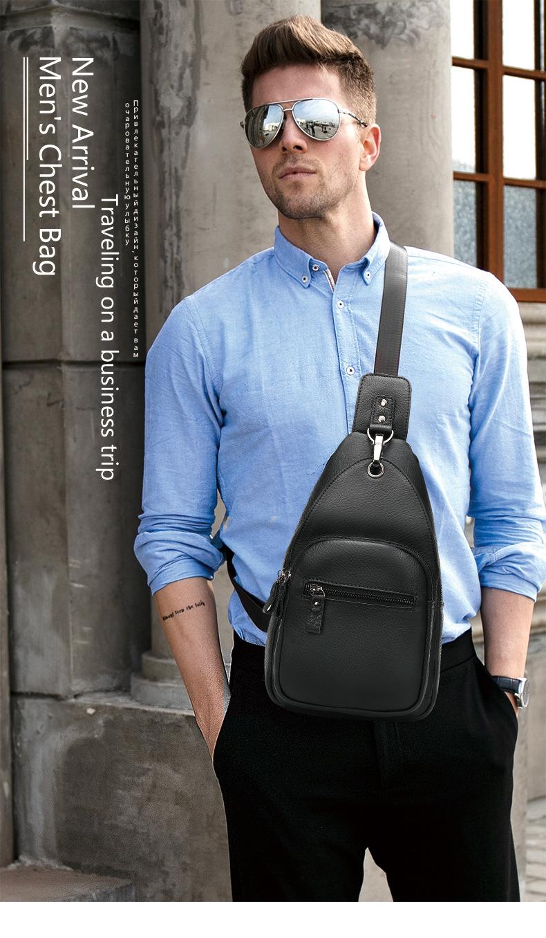 7408/7383 bolsa de pecho de cuero genuino bolsa de pecho para hombre bolsa de mensajero de hombro de piel de vaca
