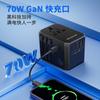 Enchufe de viaje de nitruro de galio de 70 W, carga rápida, alta potencia, estándar americano, estándar europeo, enchufe de viaje, enchufe de conversión multifunción