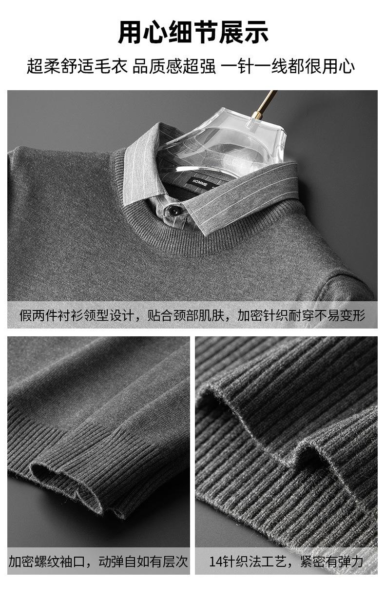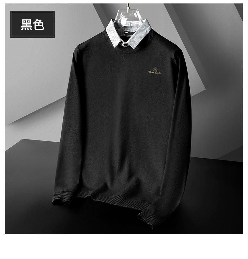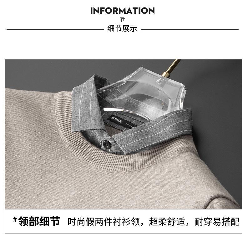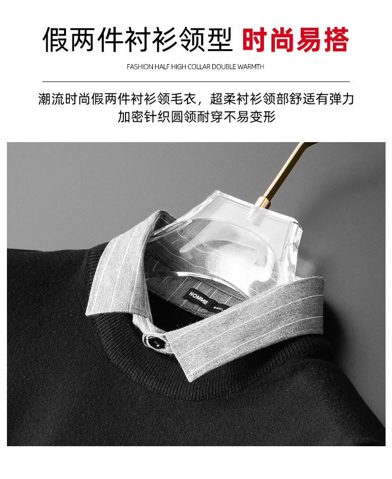 Otoño e Invierno Falso Dos Piezas Cuello de Camisa Casual para Hombre 2025 Nuevo Terciopelo Engrosado Top Delgado con Cuello Prendas de Punto Modernas