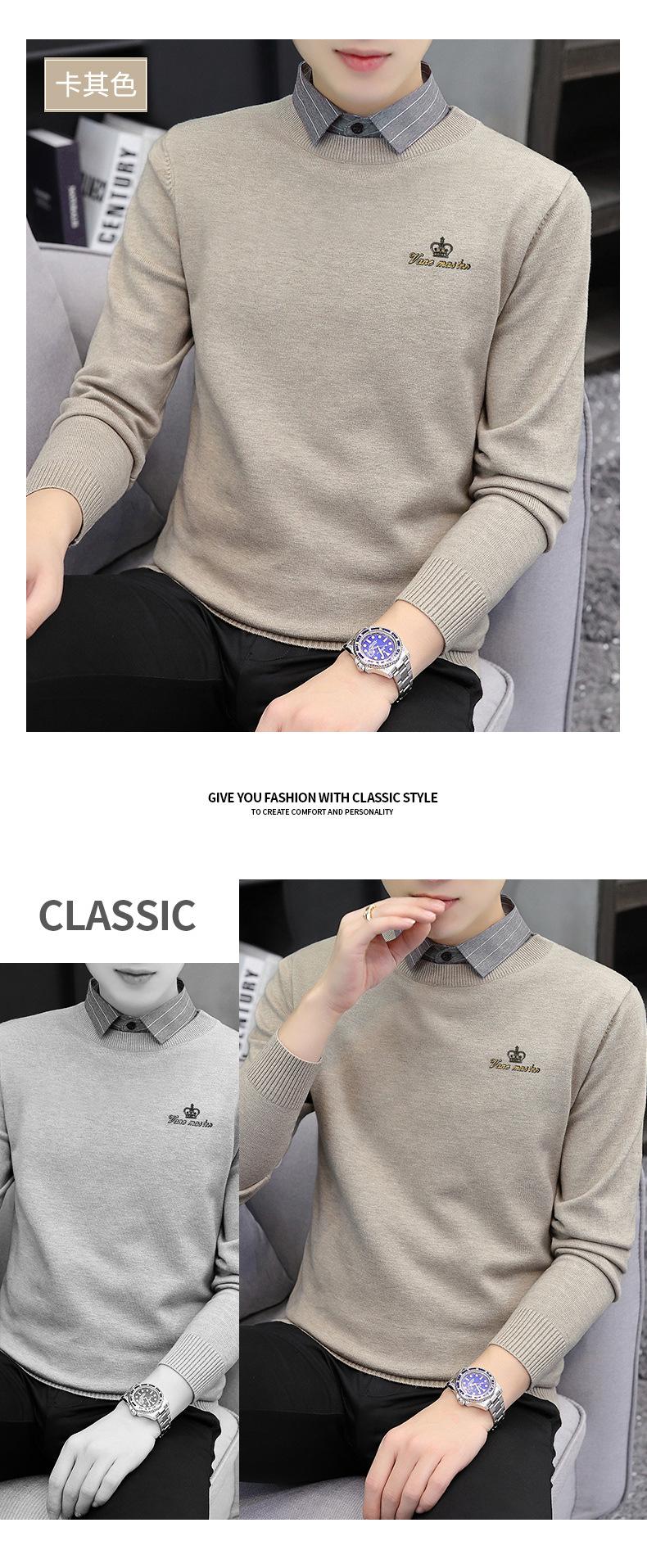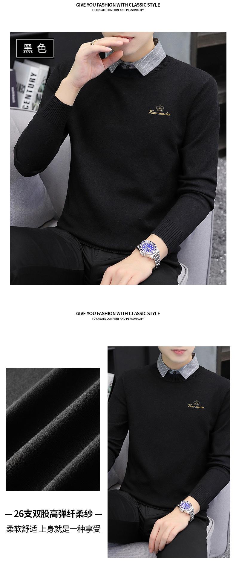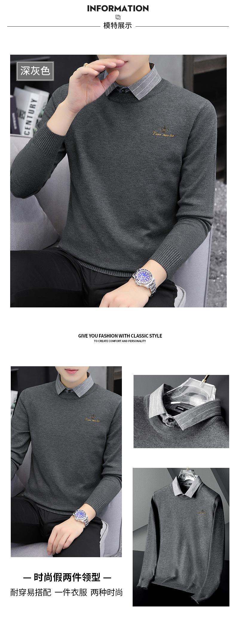 Otoño e Invierno Falso Dos Piezas Cuello de Camisa Casual para Hombre 2025 Nuevo Terciopelo Engrosado Top Delgado con Cuello Prendas de Punto Modernas