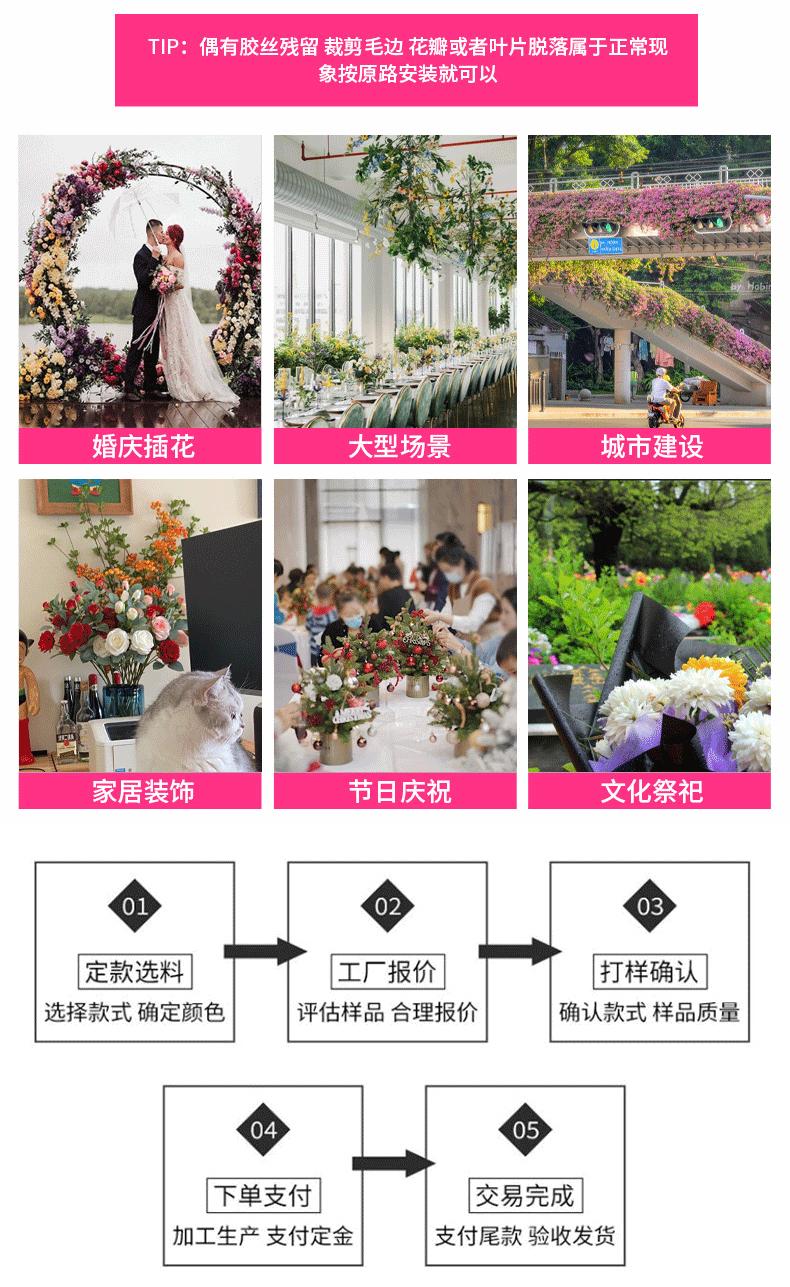 Estimados clientes, nuestra tienda fabrica, vende y vende al por mayor todo tipo de flores y plantas artificiales. En principio, vendemos artículos grandes, pero también ofrecemos muestras. Sin embargo, no se admiten devoluciones ni cambios de productos de muestra. Si compra solo uno o dos ejemplares de cada tipo, o si elige comprar uno o dos ejemplares de varios tipos, se considerará una muestra. No se aceptan reembolsos. Le recomendamos leer atentamente antes de realizar un pedido.