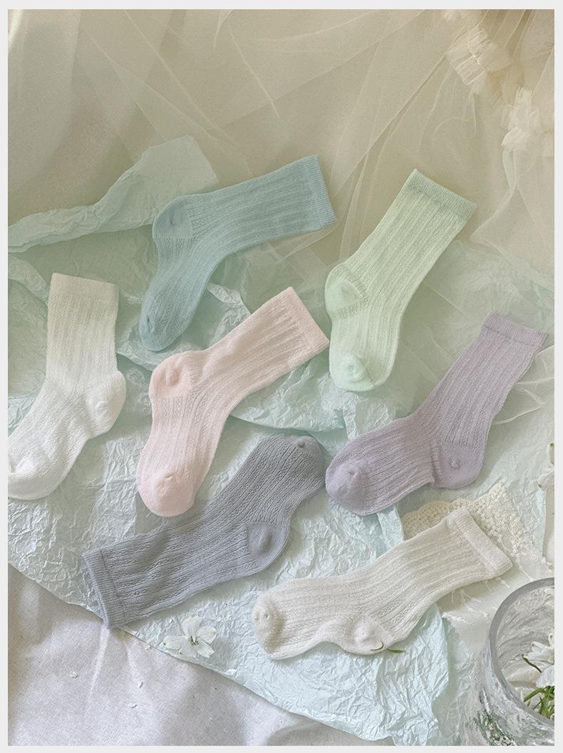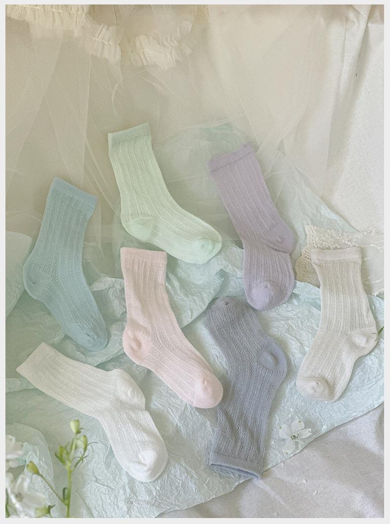 Calcetines para niños primavera y verano delgados blancos calcetines para bebé para niñas color sólido malla transpirable A calcetines de algodón sin costuras