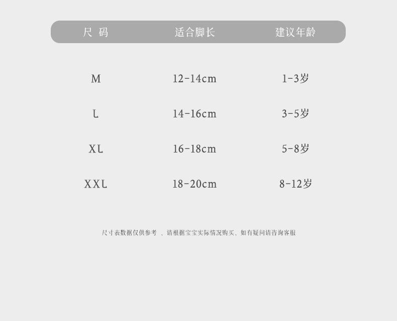 M suitable for 1-3 years old (socks bottom length 12cm), l suitable for 3-5 years old (socks bottom length 14c...
