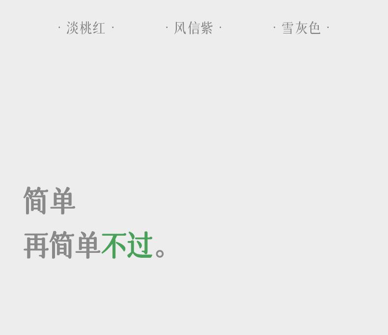 snow gray, Ivory White, Mangosteen White, fresh green, lake water blue, Fengxin Purple, Pale Peach