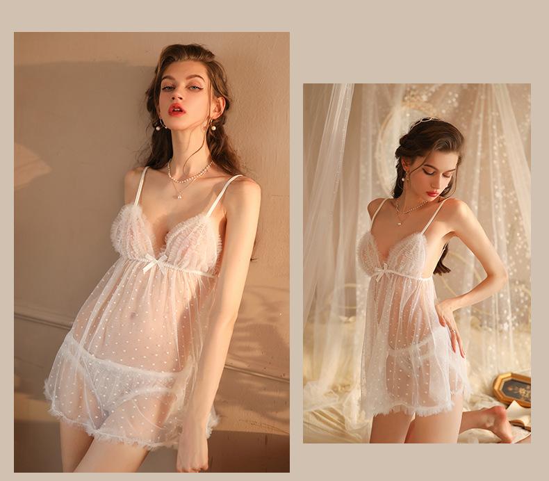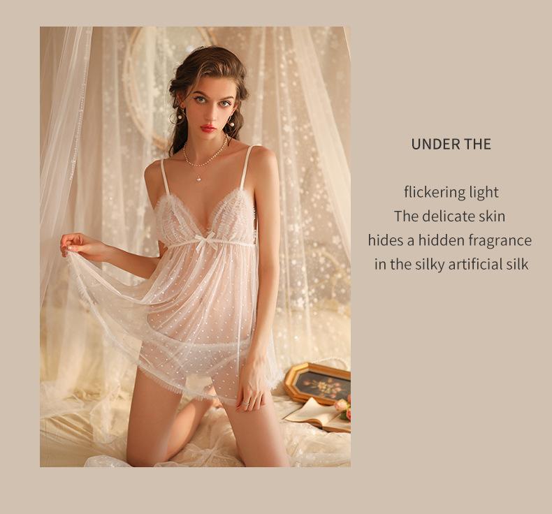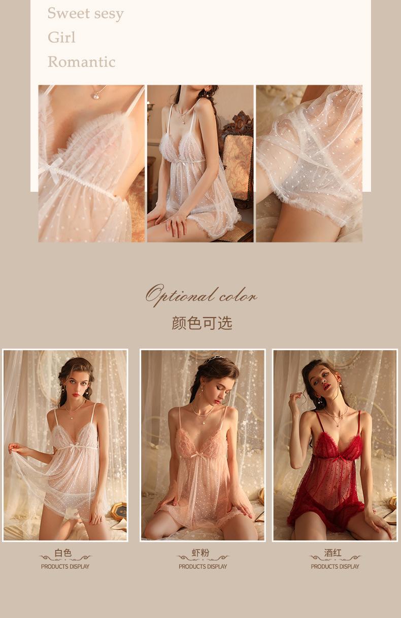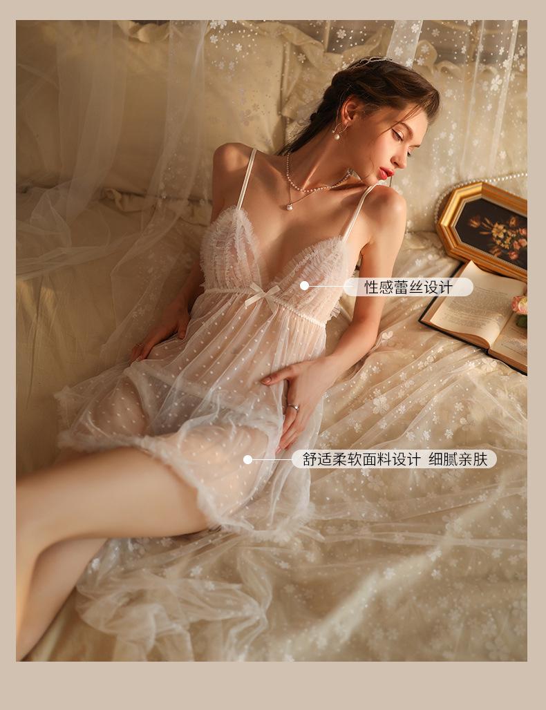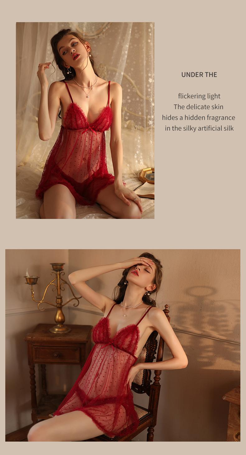 Pijama sexy con punto de onda, gasa de ensueño, perspectiva de tentación, camisón con escote en V profundo, pijama sexy transparente al por mayor