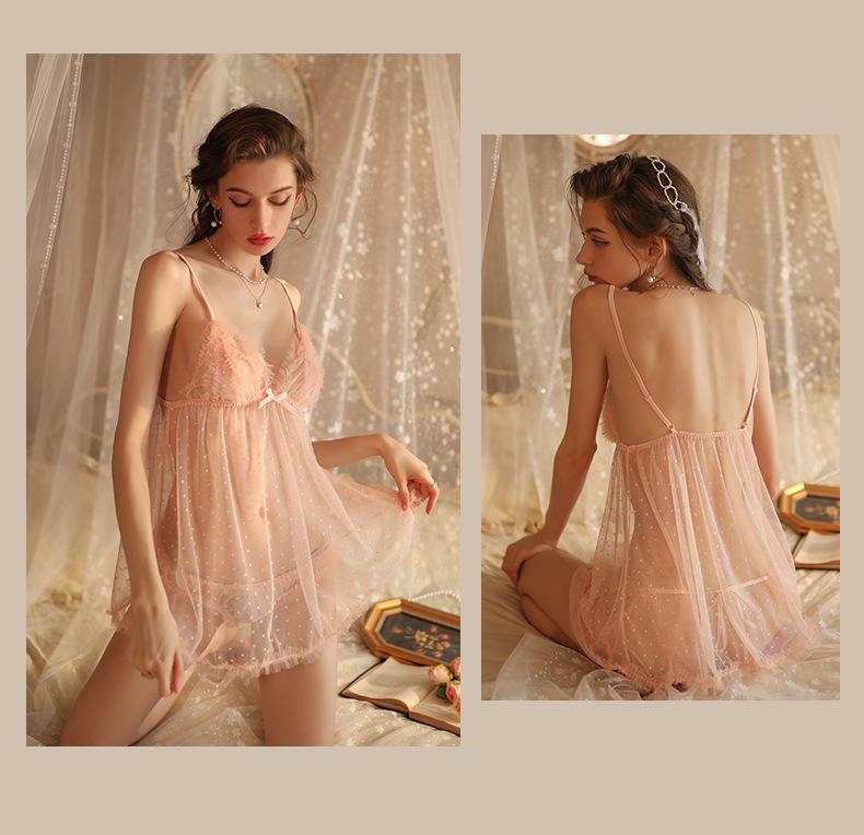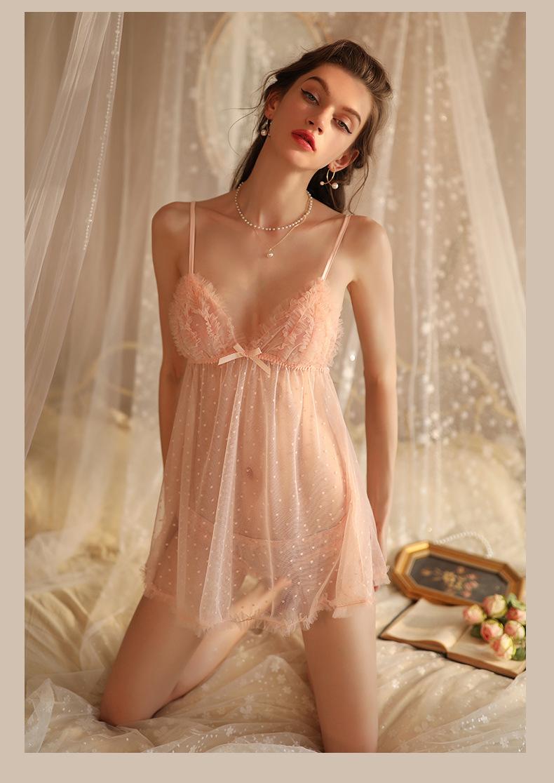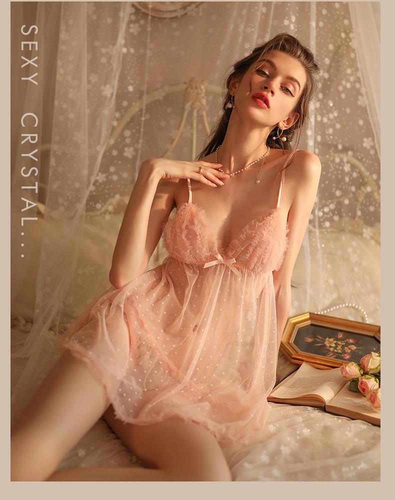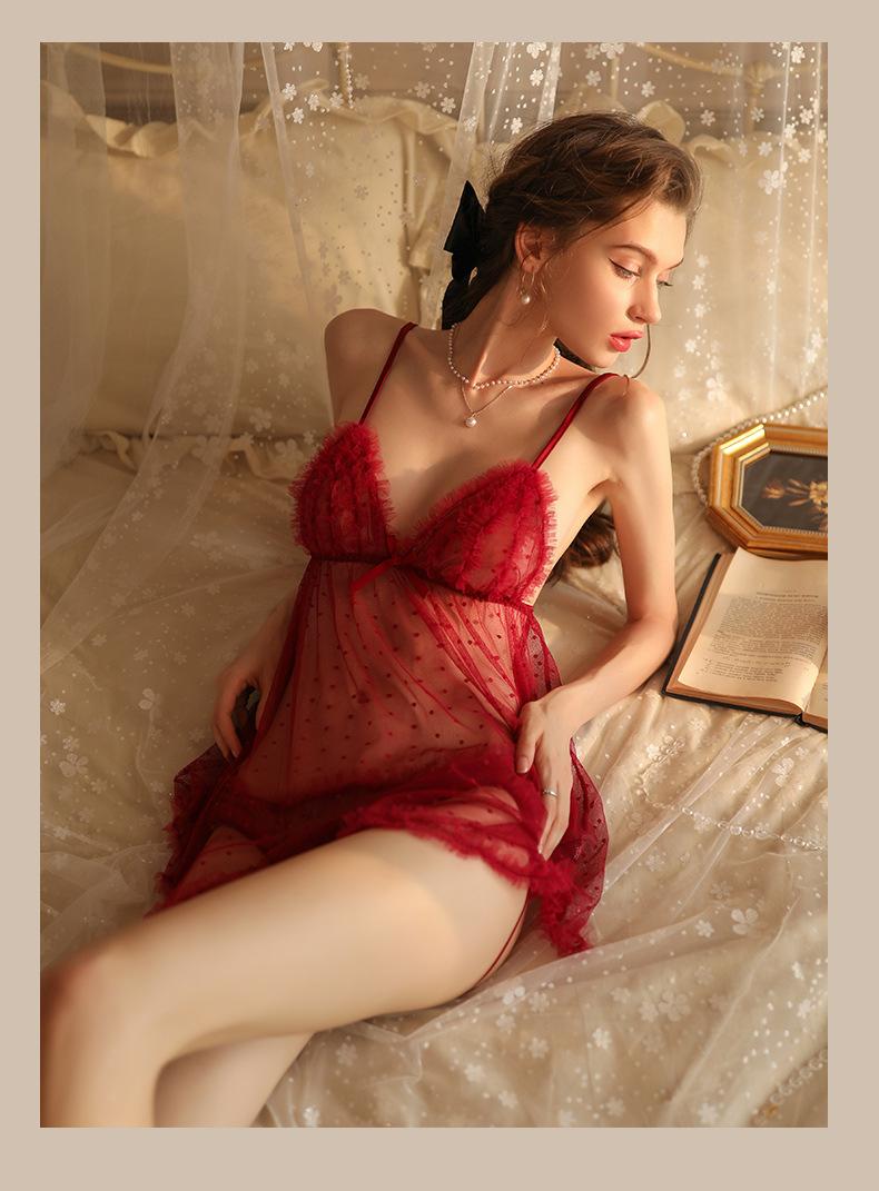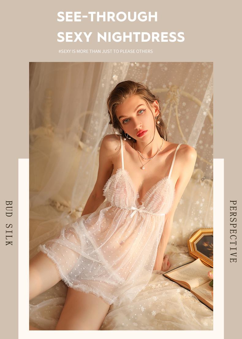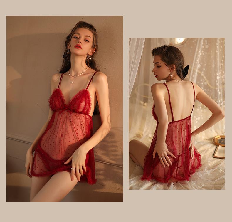 Pijama sexy con punto de onda, gasa de ensueño, perspectiva de tentación, camisón con escote en V profundo, pijama sexy transparente al por mayor