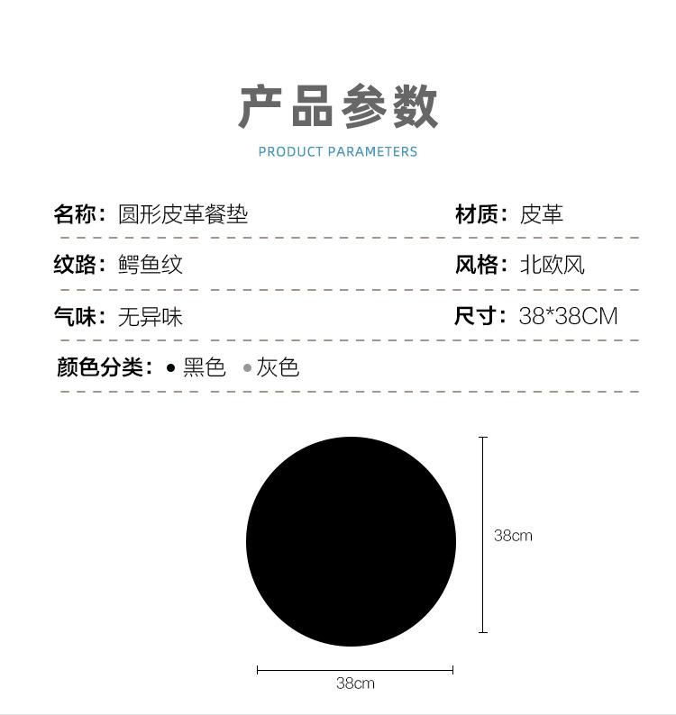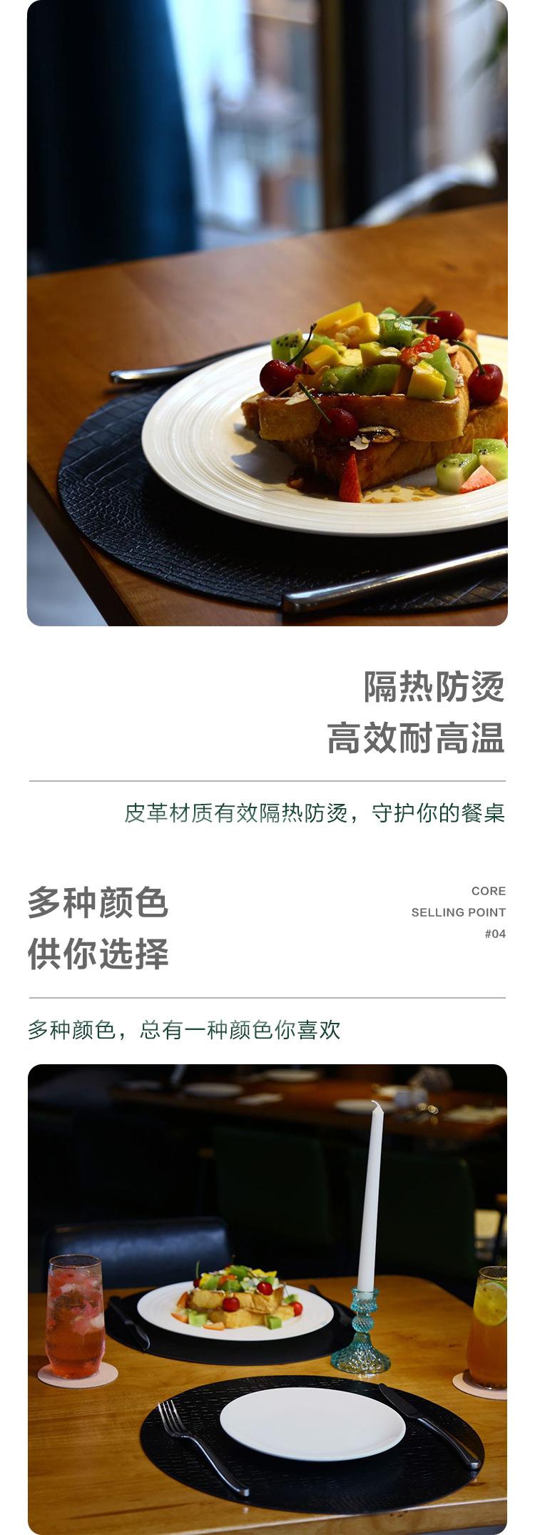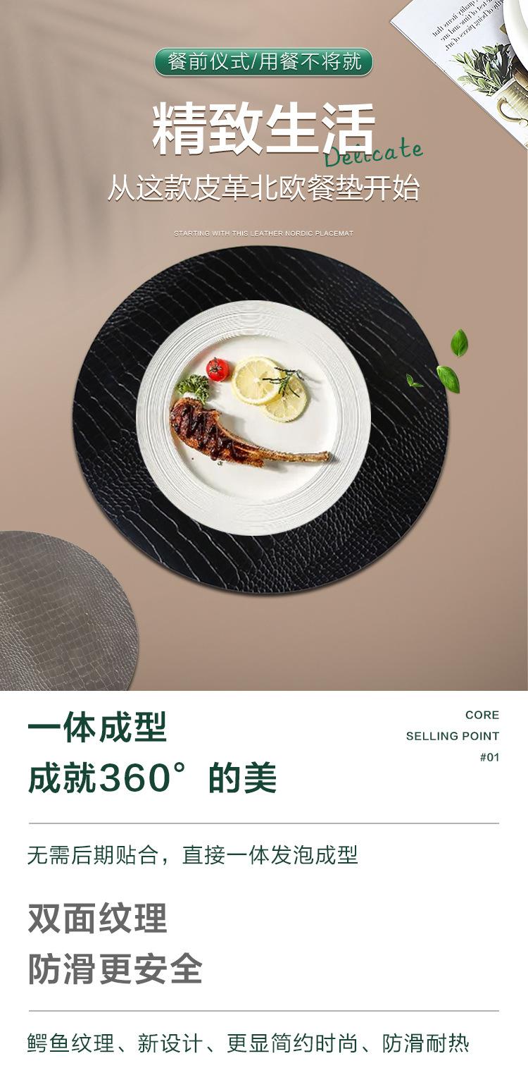 Estilo Escandinavo Impermeable, a Prueba de Aceite y Antiescaldante Restaurante Occidental Redondo Mantel Individual de Cuero con Patrón de Cocodrilo de PVC Vajilla Hotel Mismo Estilo