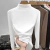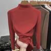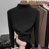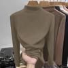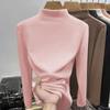 Otoño e Invierno Terciopelo Alemán Cuello Medio Alto con Camiseta Básica de Color Puro para Mujer, Ropa Exterior Delgada y Elegante, Camiseta de Manga Larga para Mujer