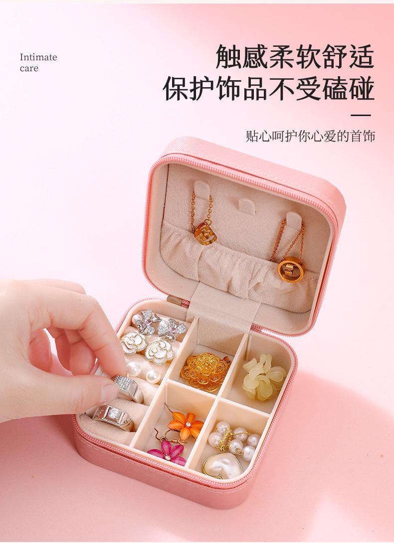 Joyero de estilo coreano, pequeño, para el hogar, para viajes, portátil, para pendientes, collares, anillos, venta al por mayor