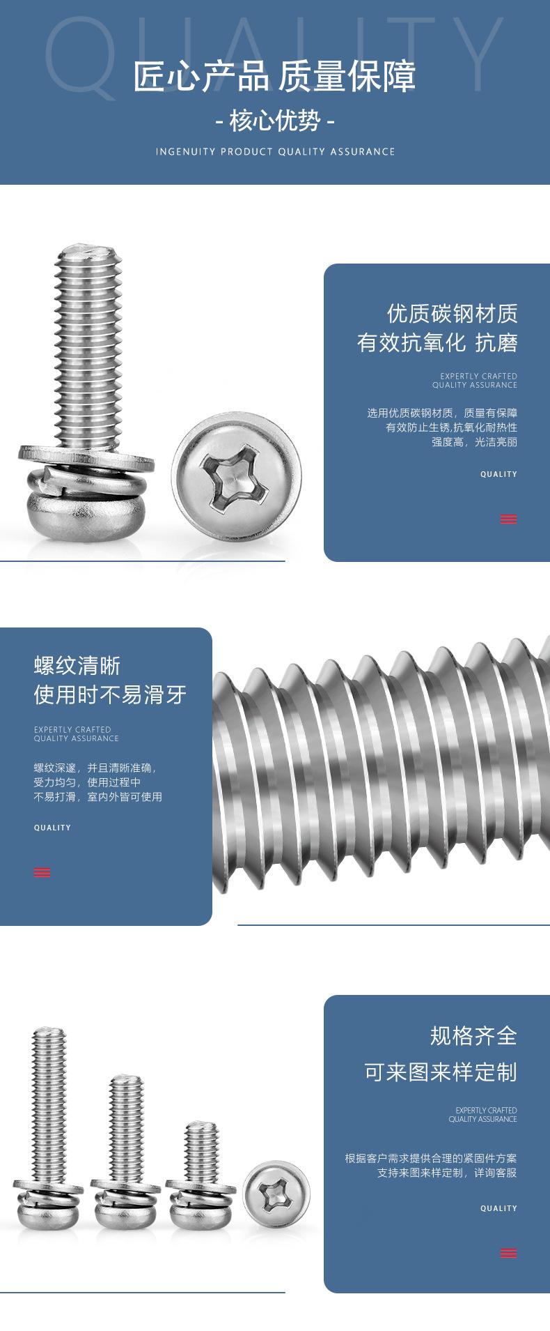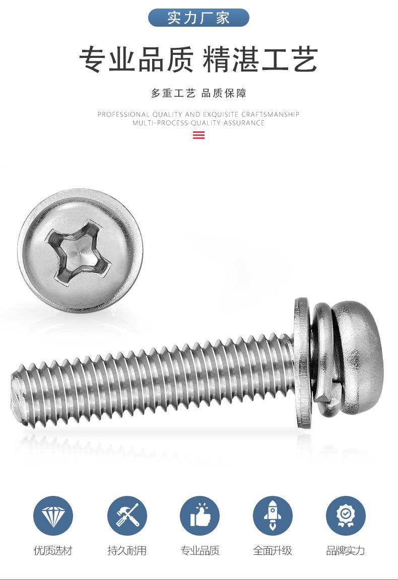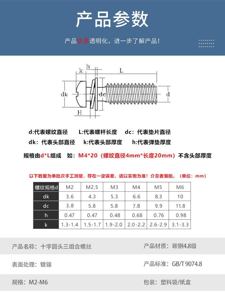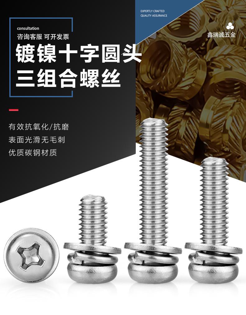 Tornillos de Combinación Tres de Cabeza Redonda Cruzada Niquelados Cabeza Pan con Arandela Elástica Plana Tornillos de Combinación Pernos de Alambre para Máquina de Cabeza Redonda M2-M6
