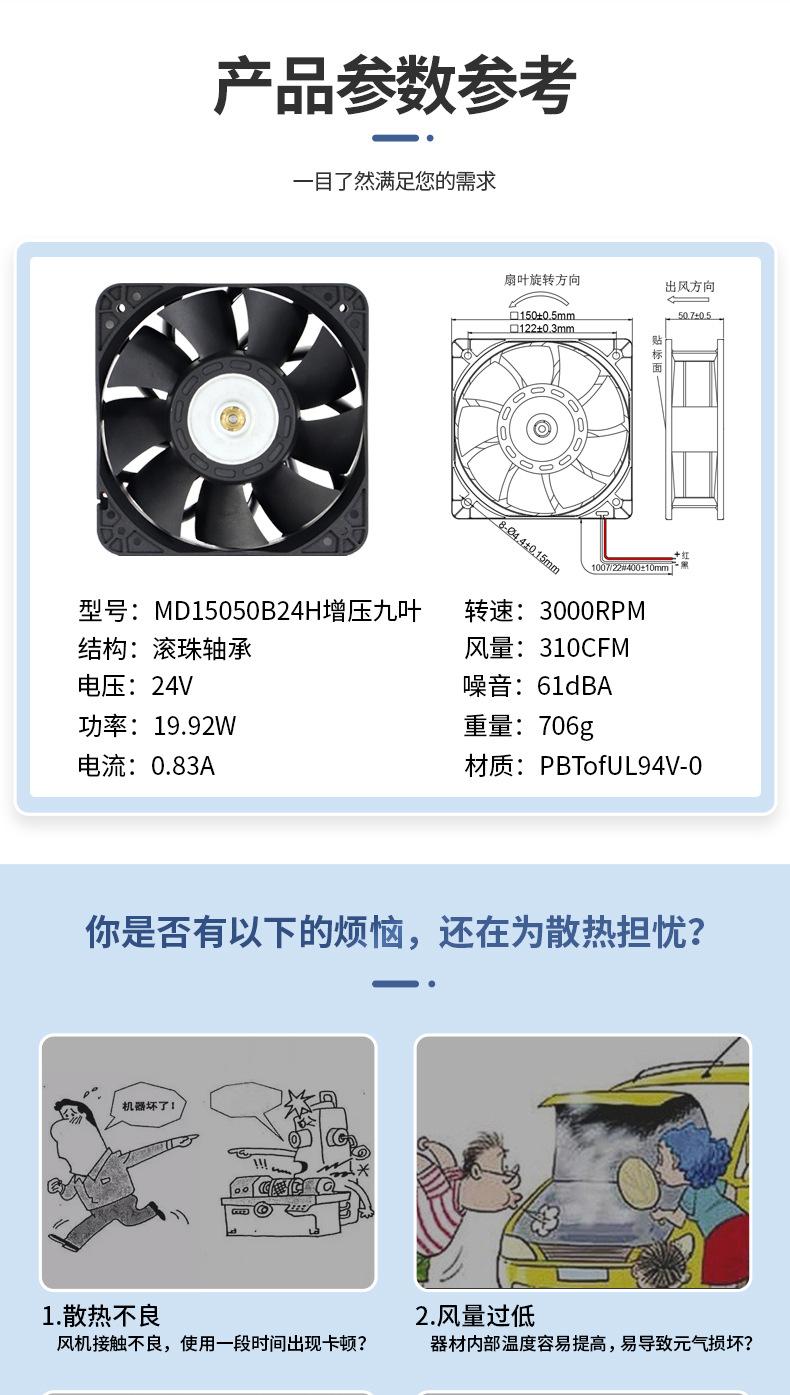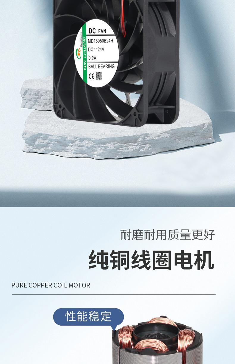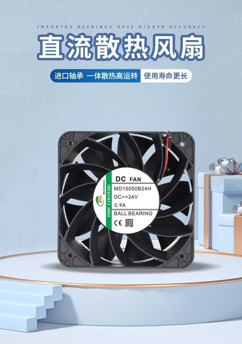 Ventilador de refrigeración industrial de CC 15050, purificador de 12 V y 24 V, con doble bola, venta directa de fábrica.