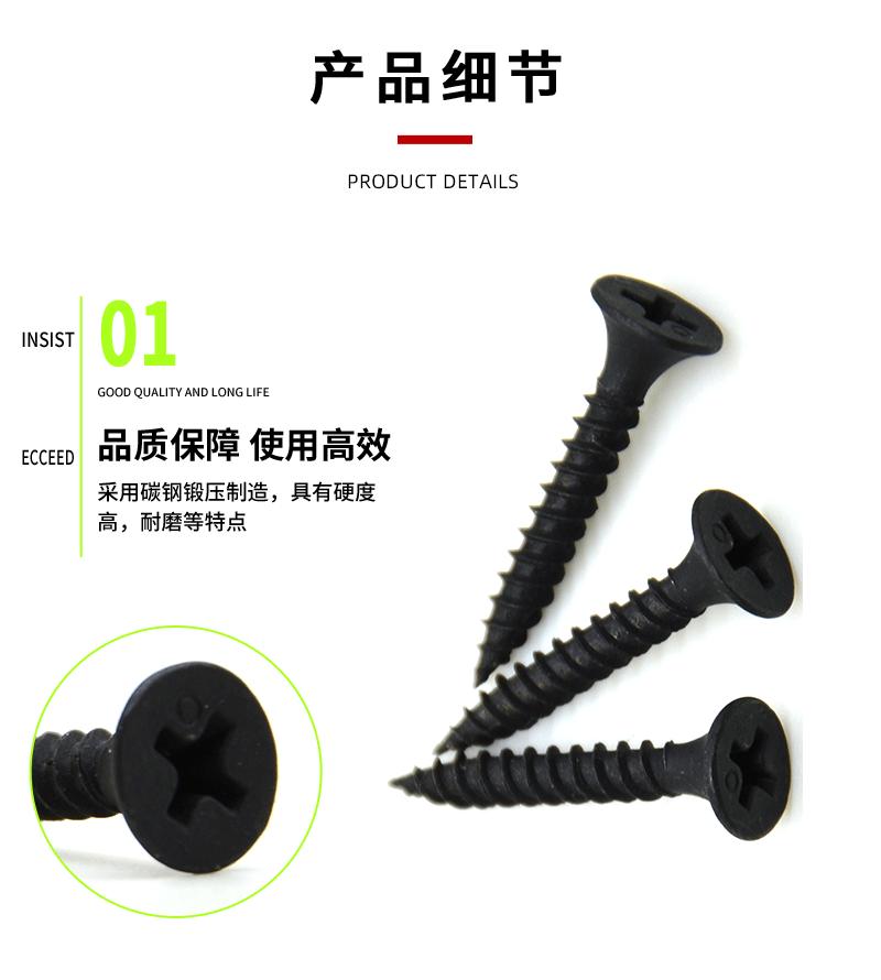 Compra Tornillos para paneles de yeso de alta resistencia Tornillos negros para paneles de yeso Cabeza avellanada cruzada Tornillos autorroscantes Clavos para techo Pared al por mayor en Joom.pro