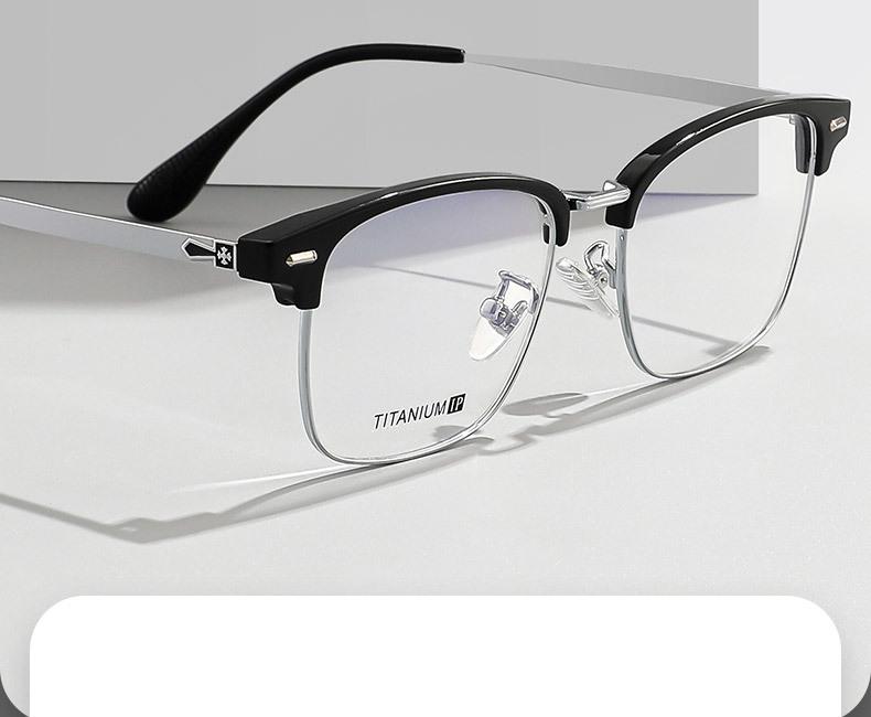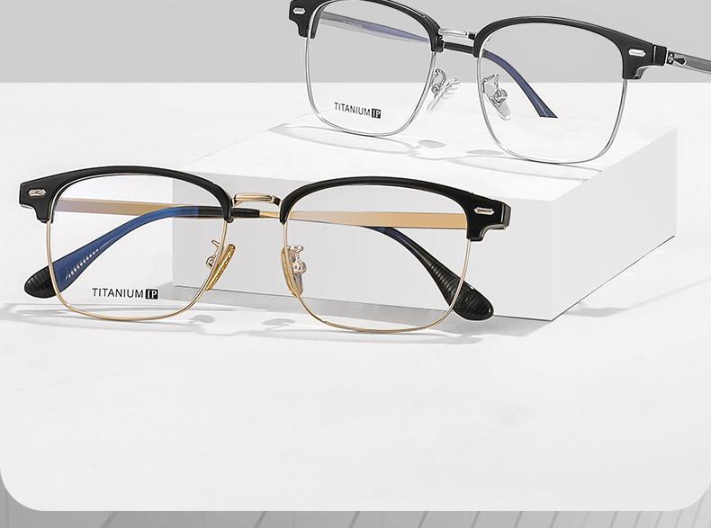 Montura Retro para Cejas Montura para Lentes de Miopía Montura Óptica de Titanio Puro Danyang 88059 Gafas de Media Montura Montura de Titanio para Hombre