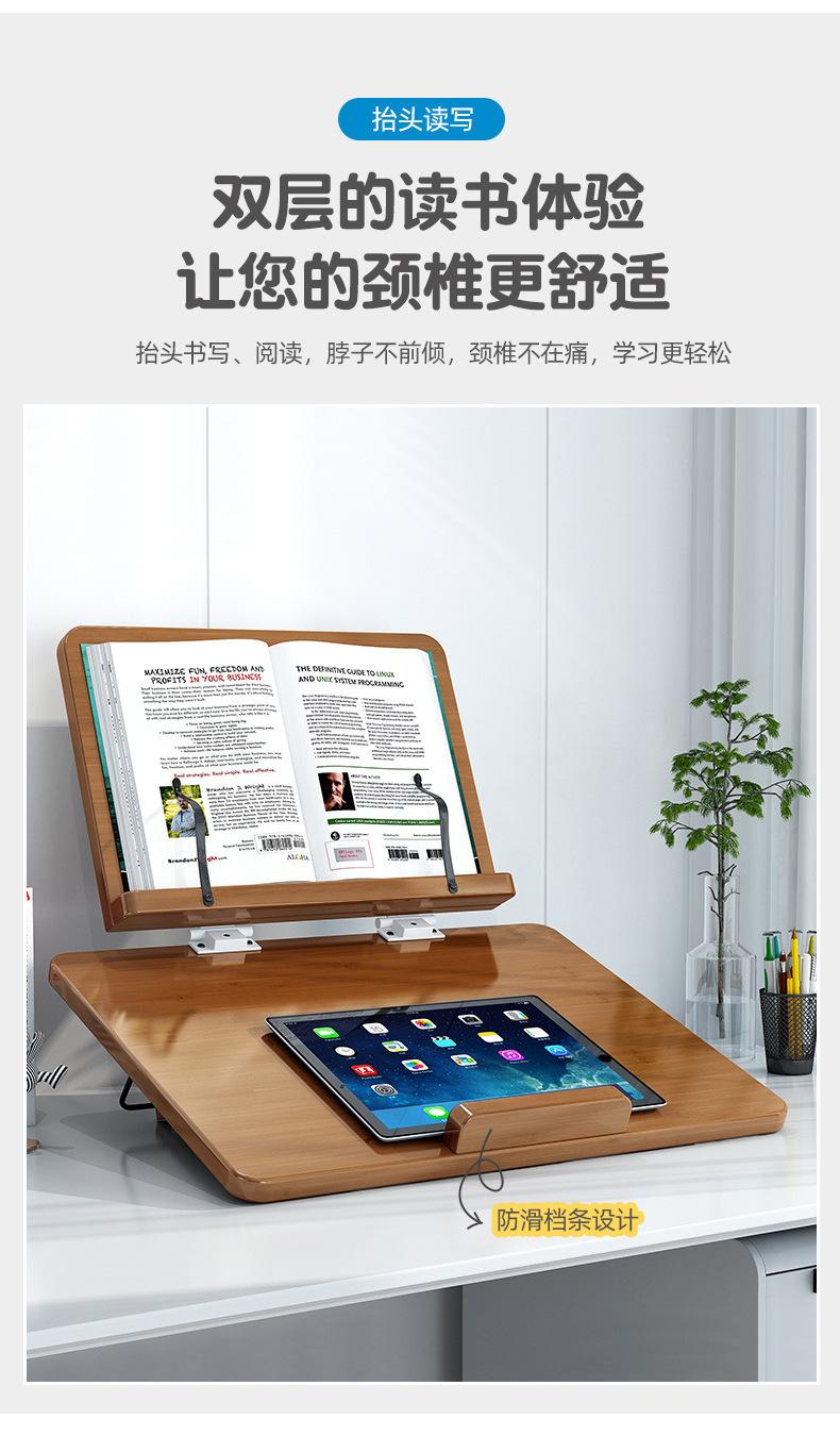 Estante de Lectura Nanzhu Estantería de Lectura para Niños Estante de Lectura de Escritorio Multifuncional de Doble Capa Soporte de Madera Elevable para Libros