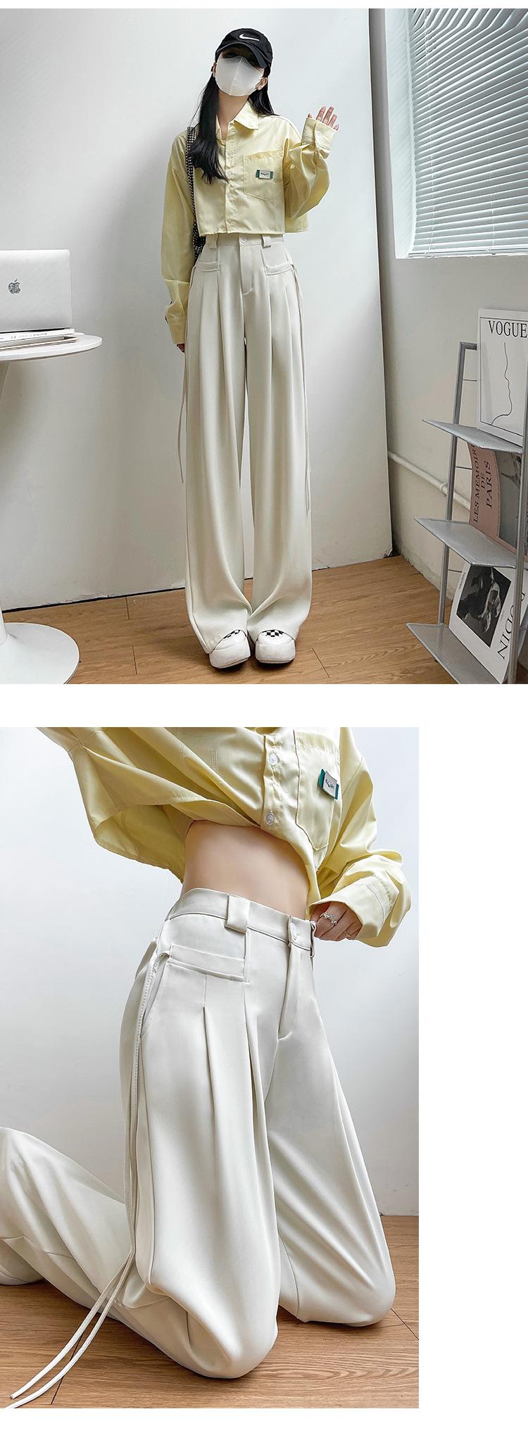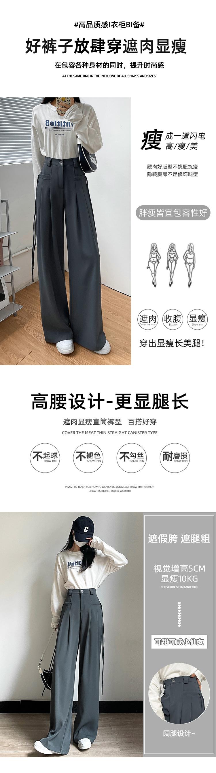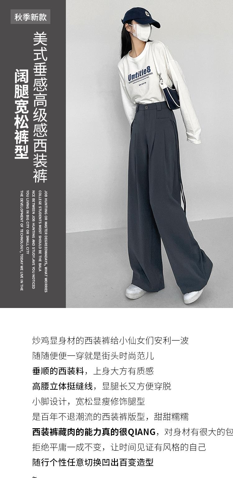 Pantalones de Traje de Pierna Ancha Estilo Americano para Mujer, Pantalones Adelgazantes Otoñales Hasta el Piso con Efecto Drapeado, Estilo Casual Coreano