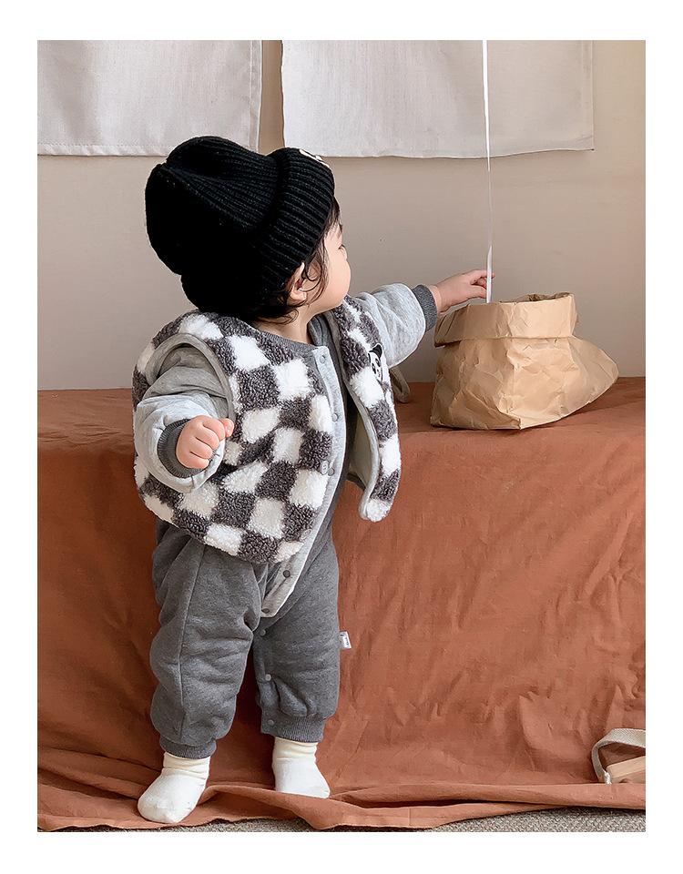 Mono de bebé, mono de invierno cálido, mono de bebé, mono con forro polar, chaleco grueso, lindo traje de oso para salir