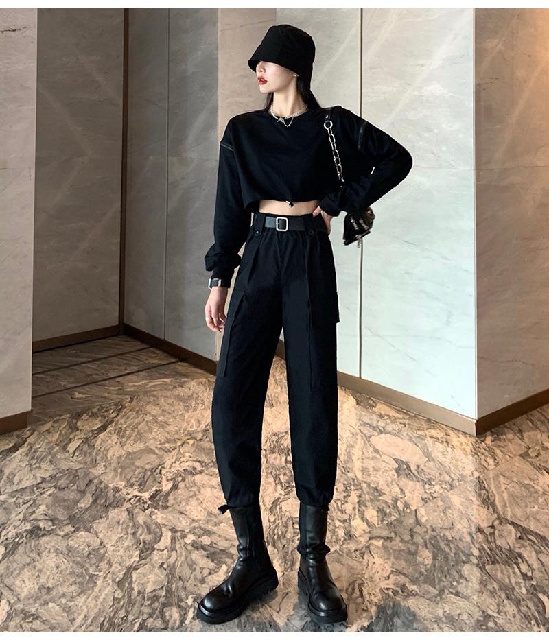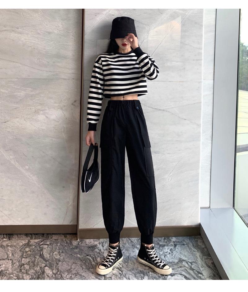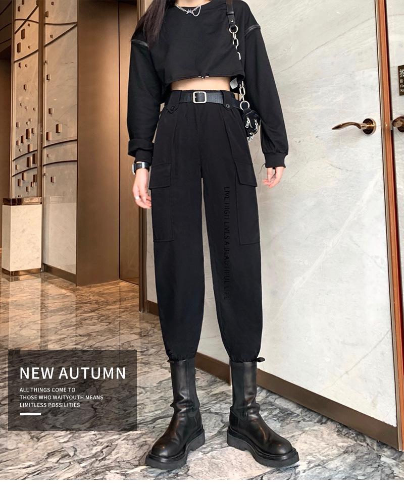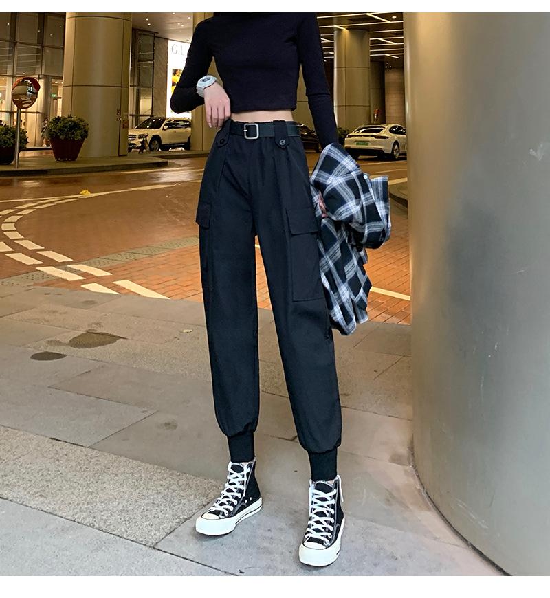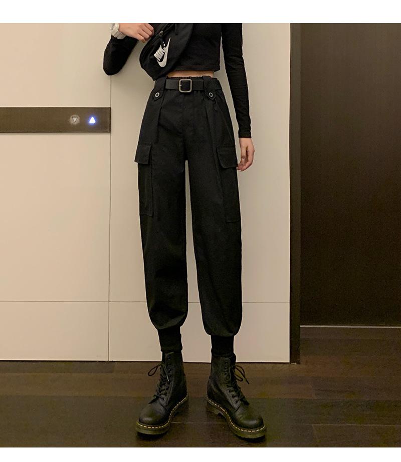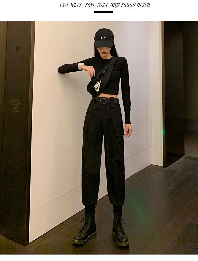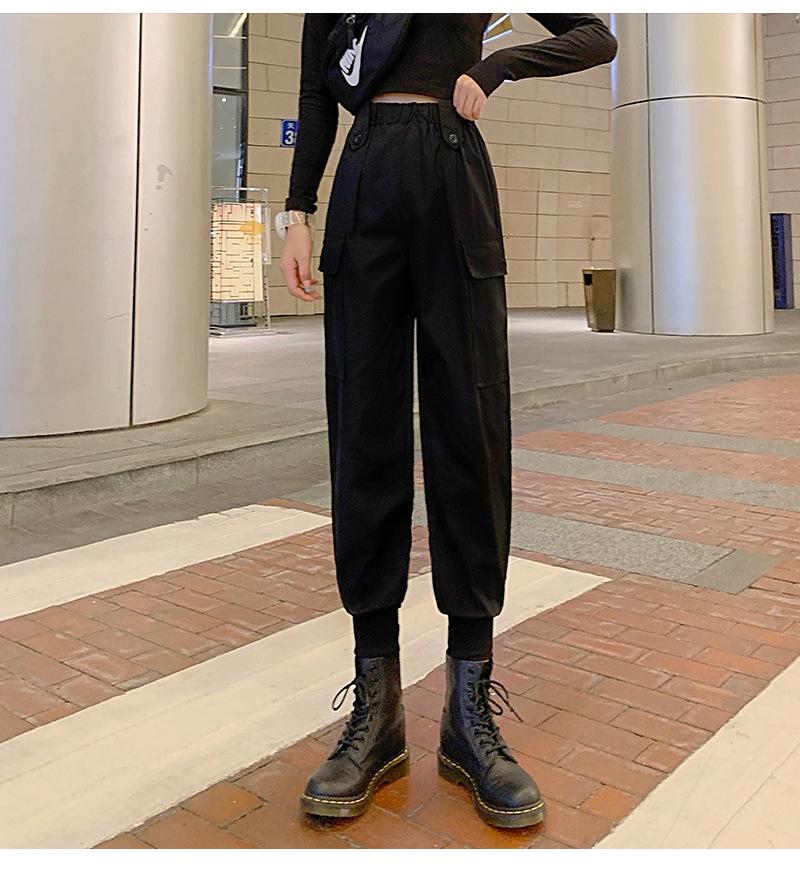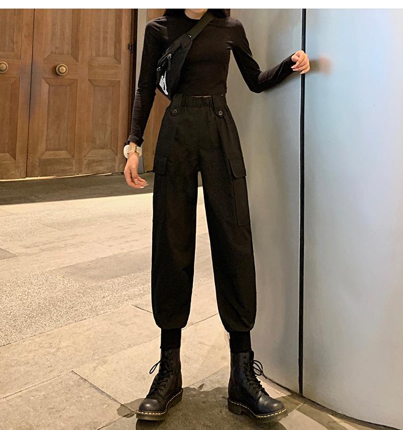 Compra Pantalones Cargo con Lazos en las Piernas para Mujer, Holgados Primavera y Otoño Nuevo Look Versátil Adelgazante Ins Modernos Negros Casuales Deportivos H457 al por mayor en Joom.pro