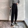 Pantalones Cargo con Lazos en las Piernas para Mujer, Holgados Primavera y Otoño Nuevo Look Versátil Adelgazante Ins Modernos Negros Casuales Deportivos H457