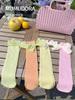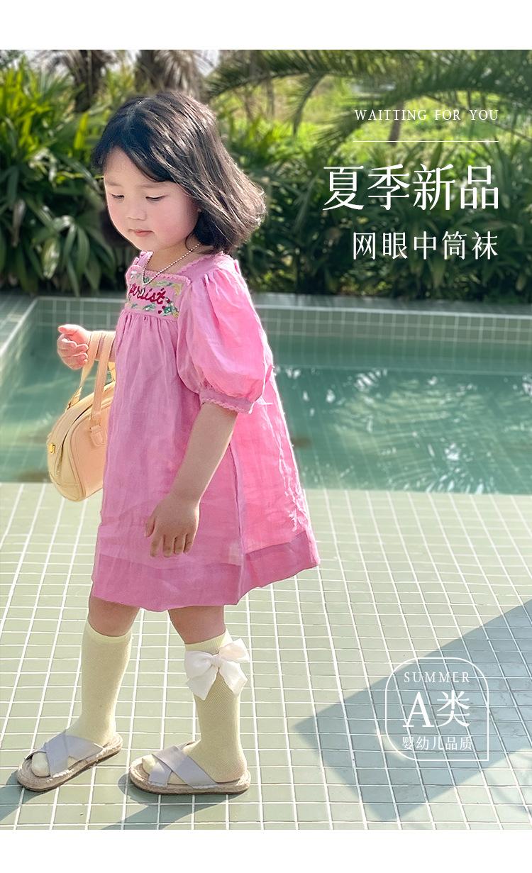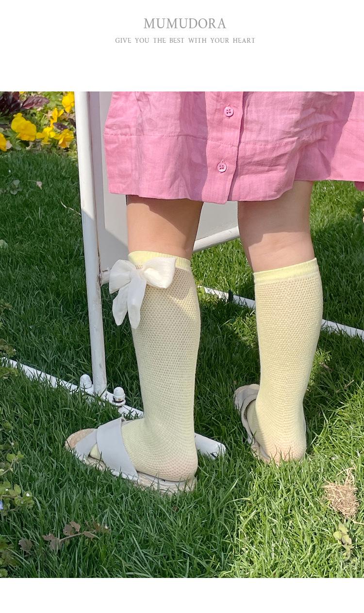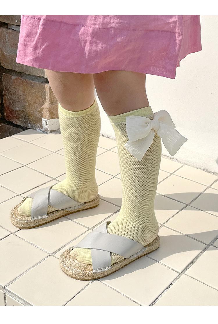 Calcetines de verano para niños, finos, con lazo, de malla, transpirables, de longitud media, apilados, para padres e hijos.