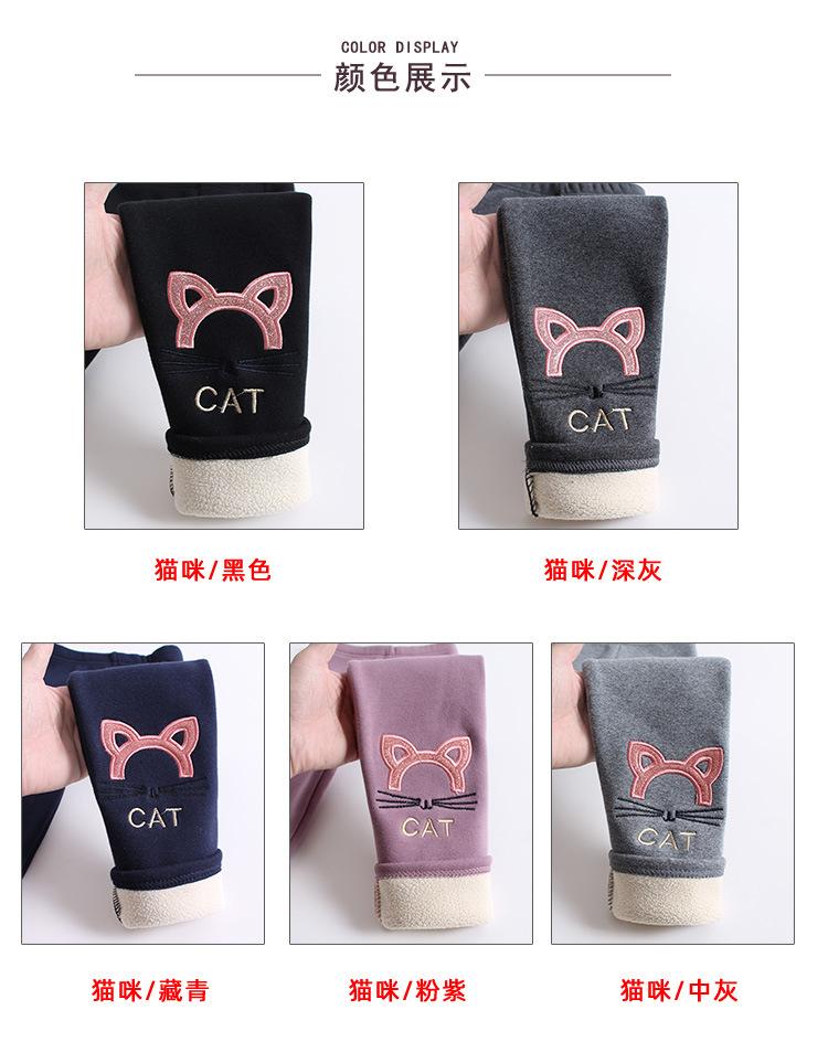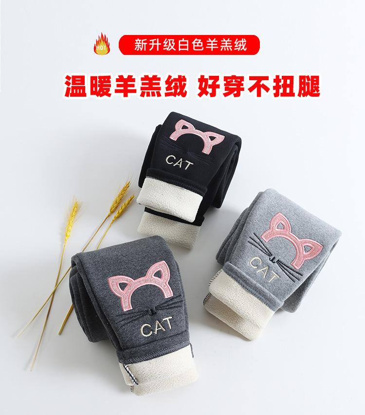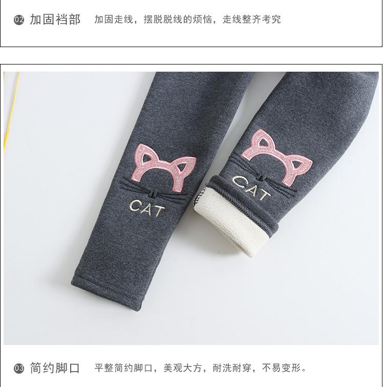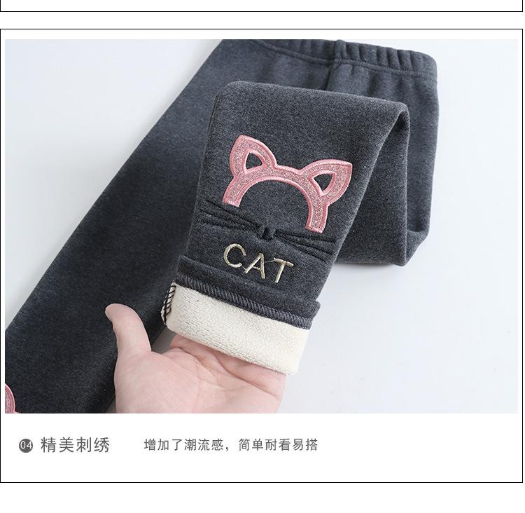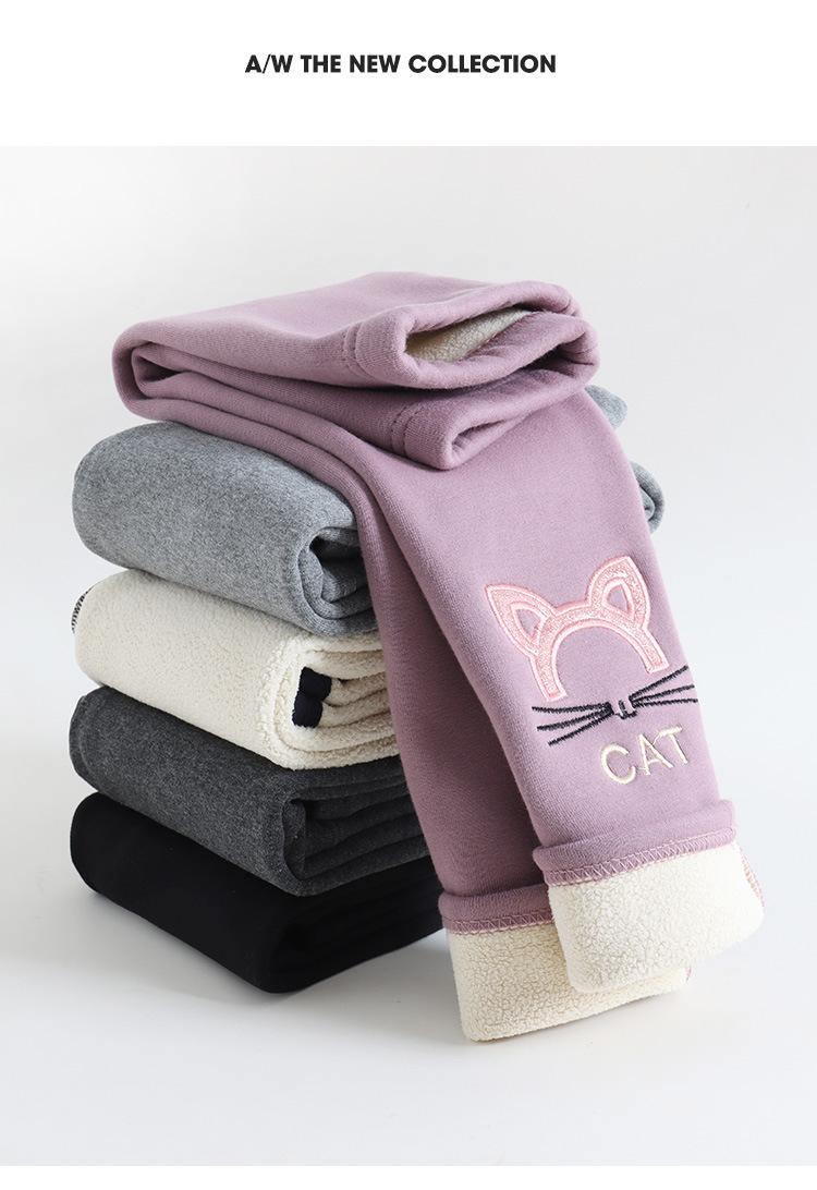 Leggings Gruesos de Invierno para Niños con Forro Polar Algodón Pantalones Cálidos de Invierno para Niñas Gatito de Dibujos Animados Bordado Pantalones de Bebé