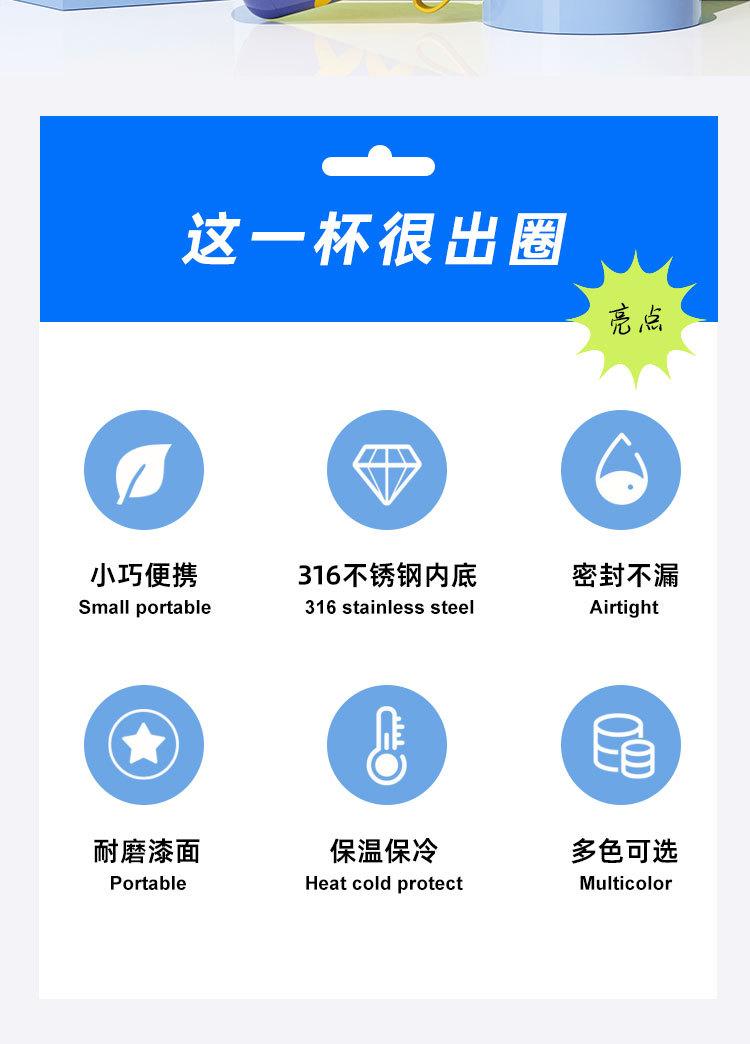 Taza Termo Portátil Compacta Nueva Personalizada Linda Corazón Femenino Ins de Aspecto Sencillo Vaso de Agua para Niños