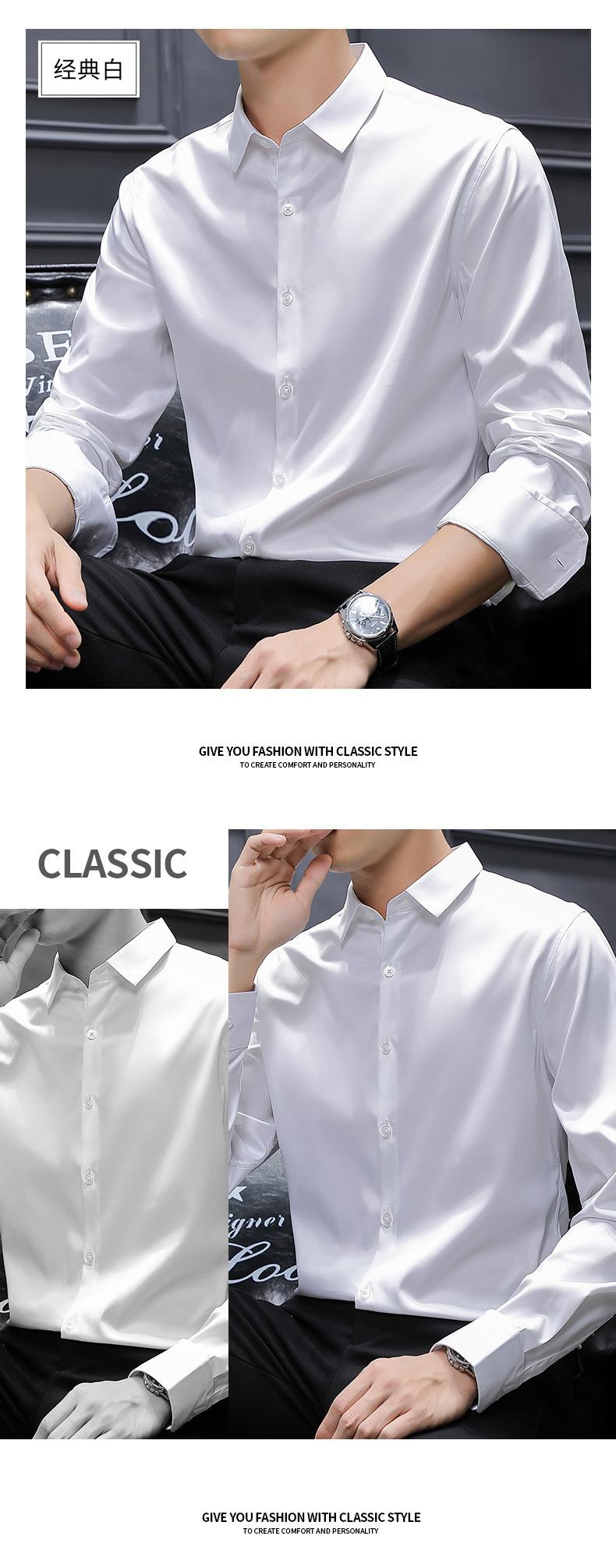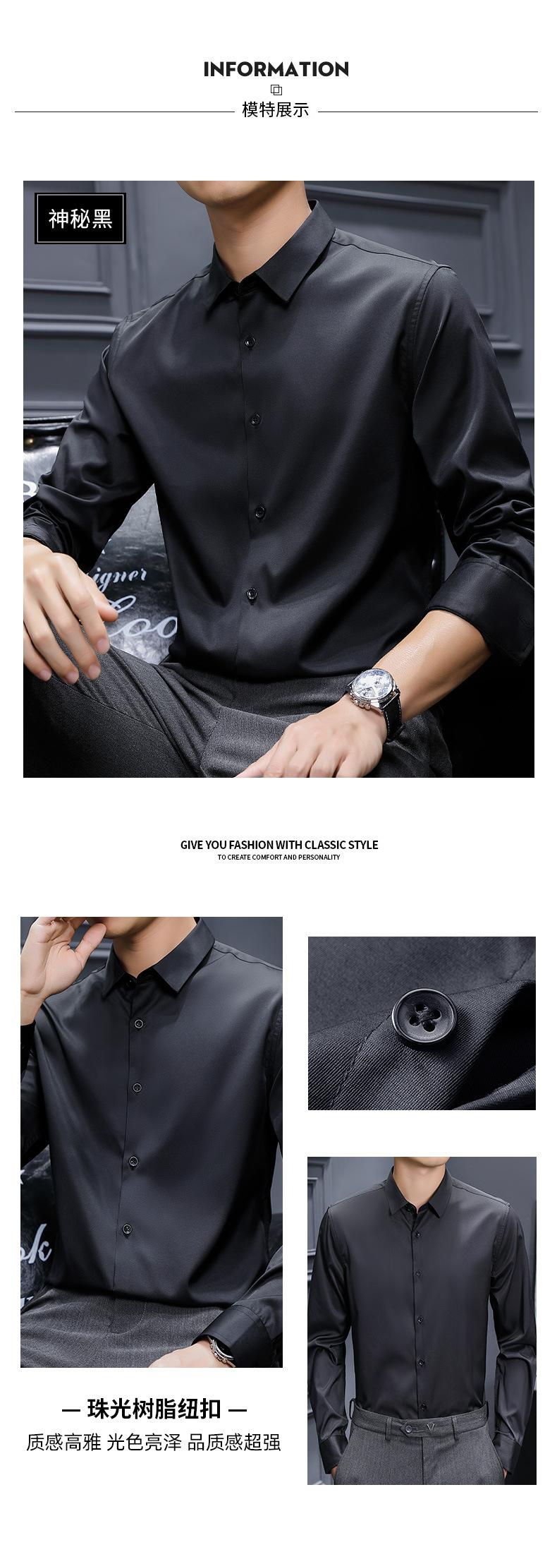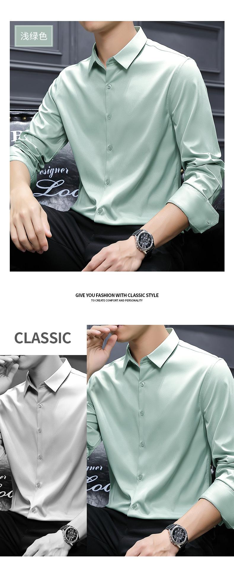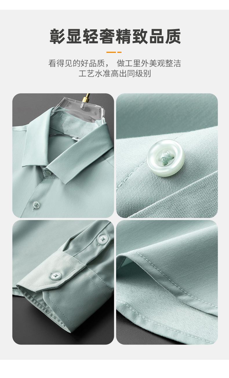 Camisa de primavera y otoño para hombre, de manga larga, sin planchado, antiarrugas, informal, de negocios, profesional, de otoño e invierno, de alta gama, ligera y de lujo.