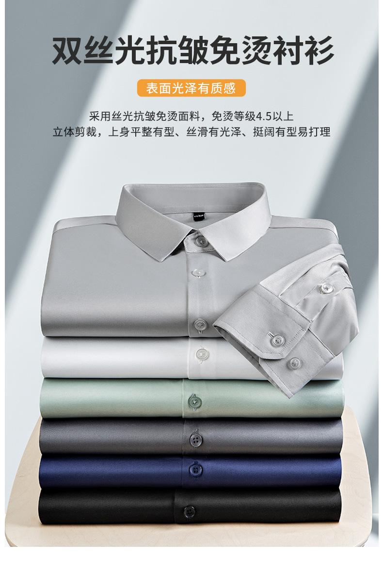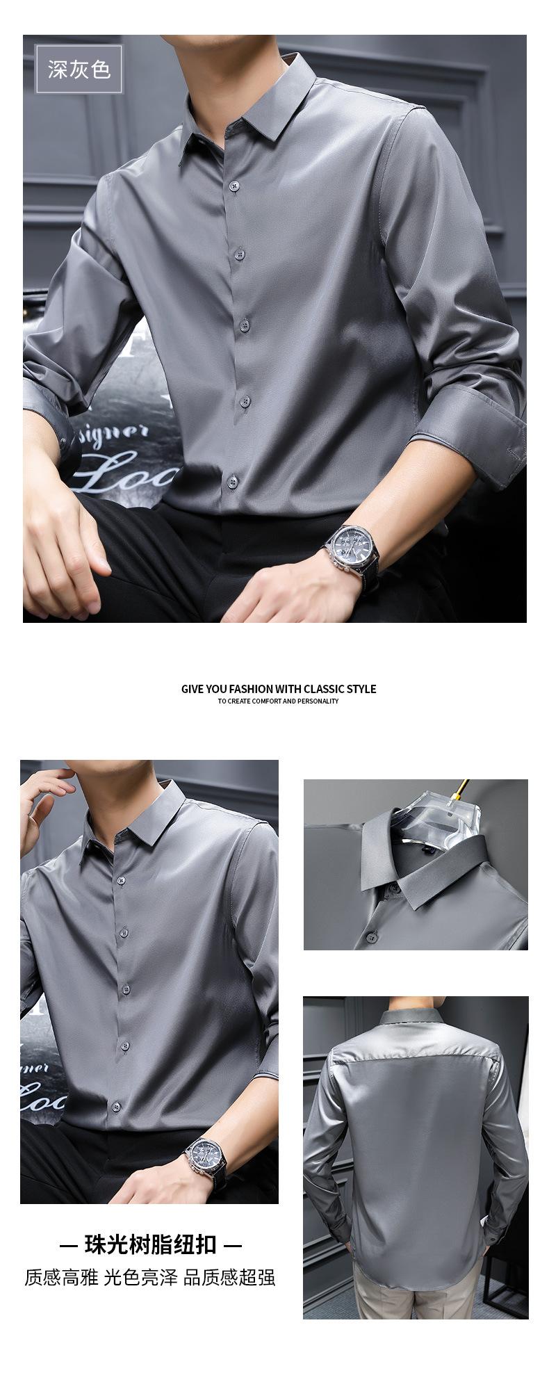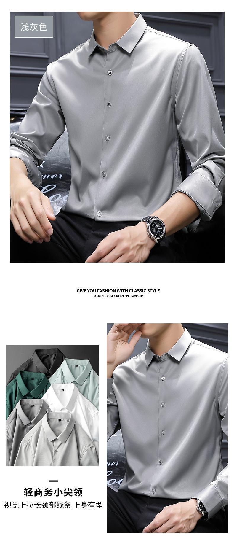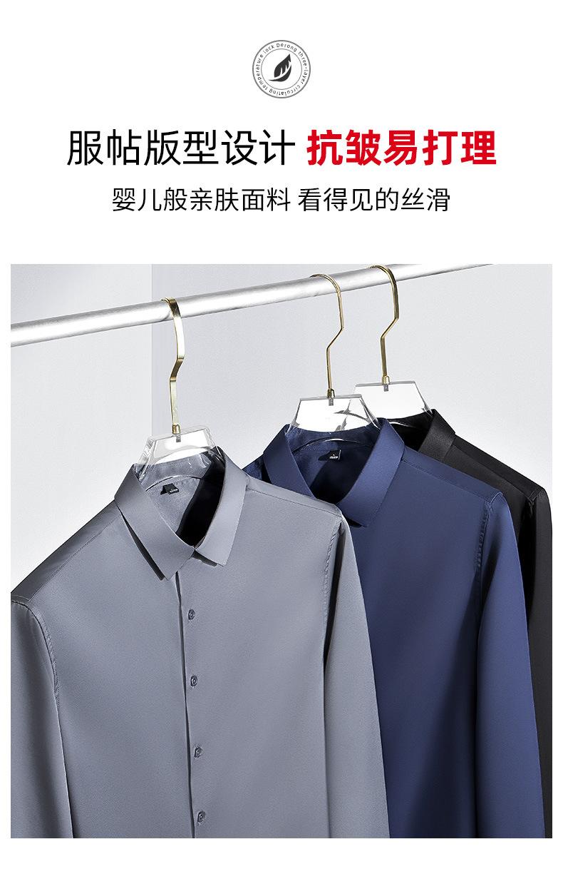 Camisa de primavera y otoño para hombre, de manga larga, sin planchado, antiarrugas, informal, de negocios, profesional, de otoño e invierno, de alta gama, ligera y de lujo.