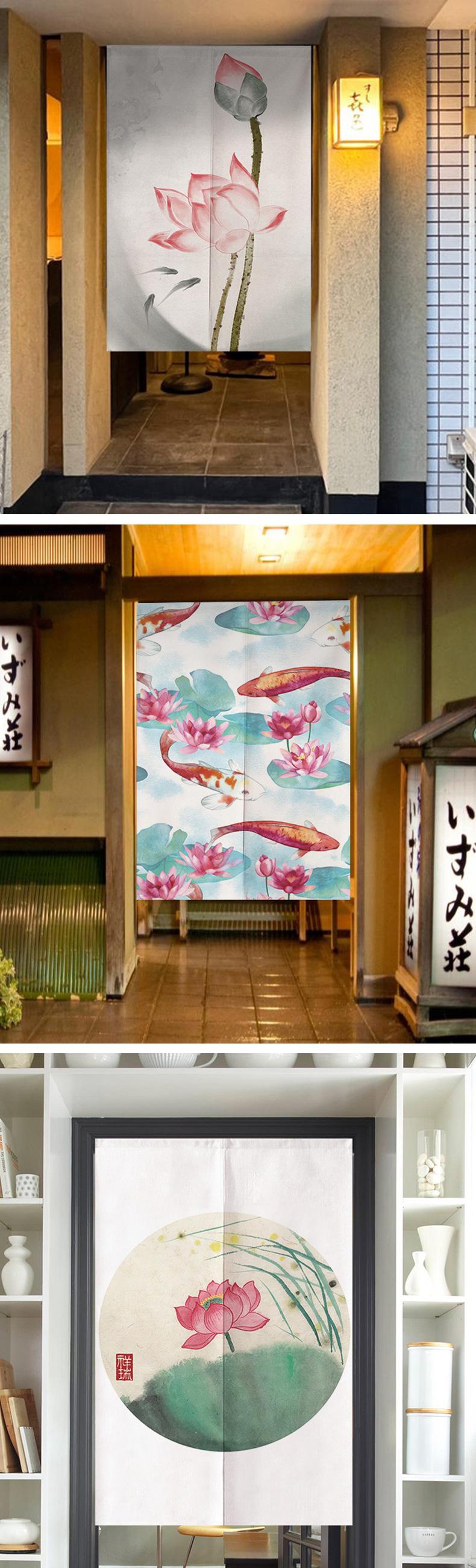 Cortina de tela para puerta de entrada, dormitorio, nueva cortina de puerta con diseño de carpa de loto china, venta al por mayor, cortina divisoria