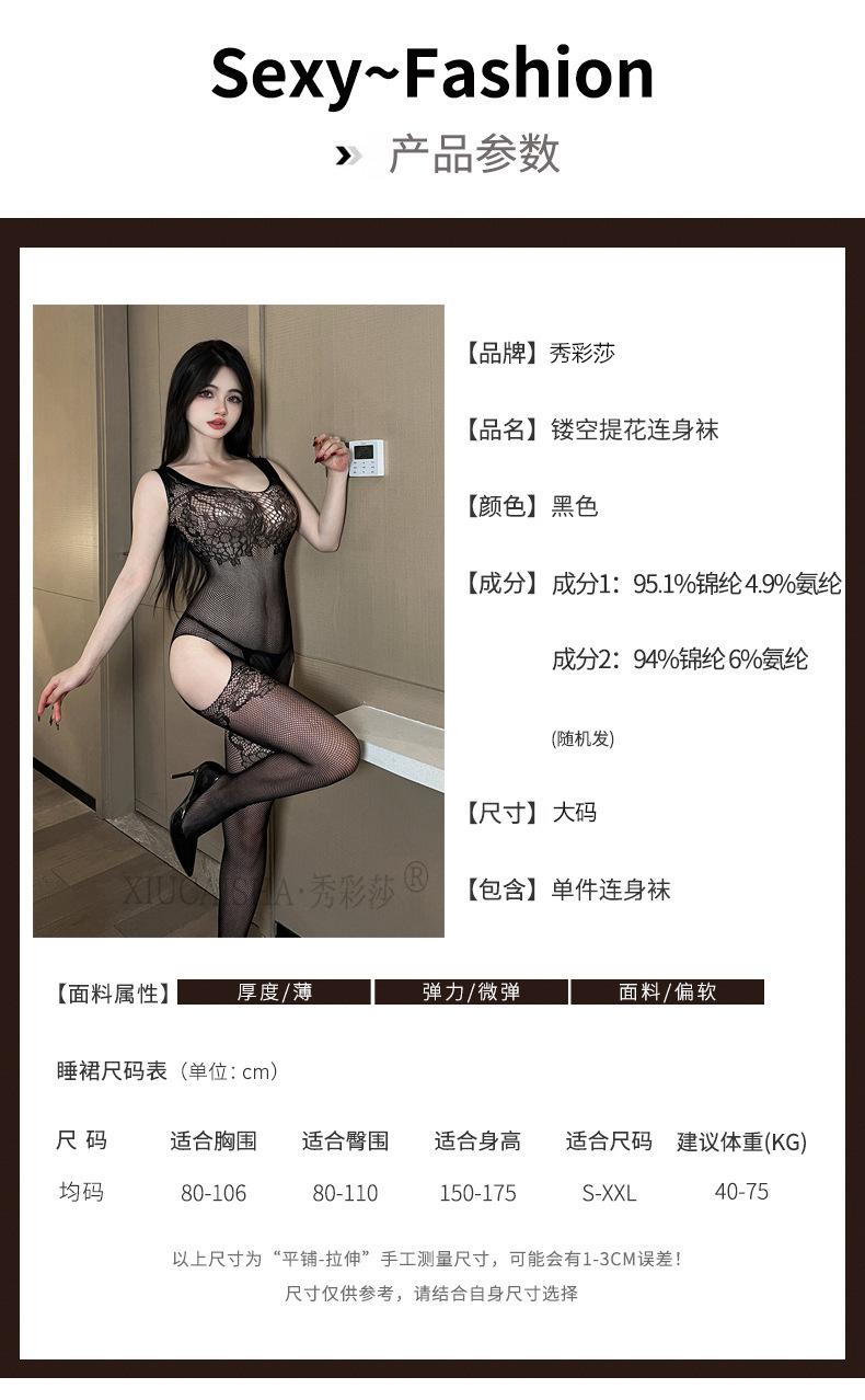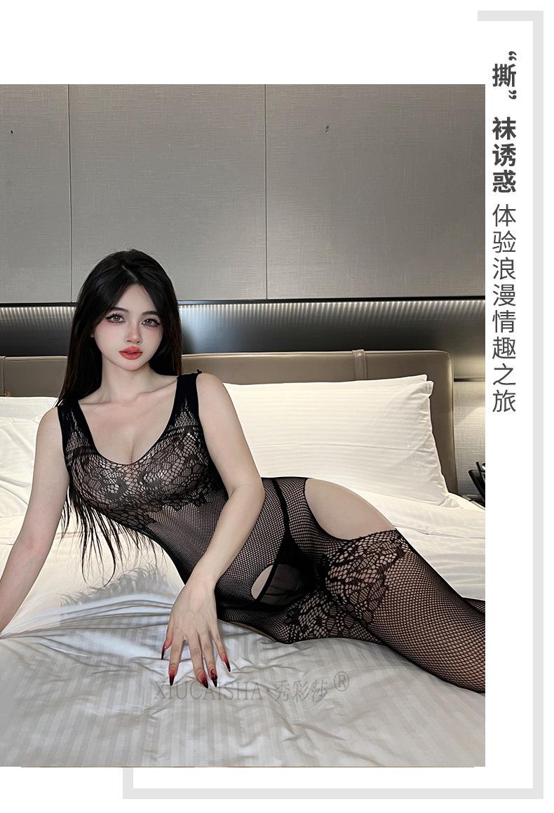Lencería sexy, medias de tentación, ropa de red sexy, medias de malla, suministros de entrepierna abierta, pasión unida, rasgable, seda negra, uniforme de talla grande