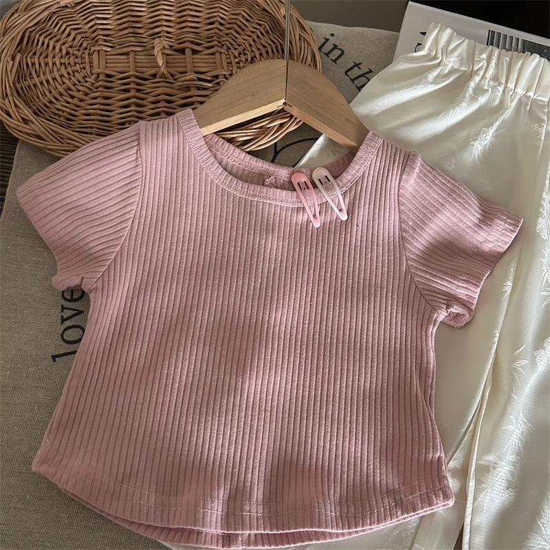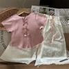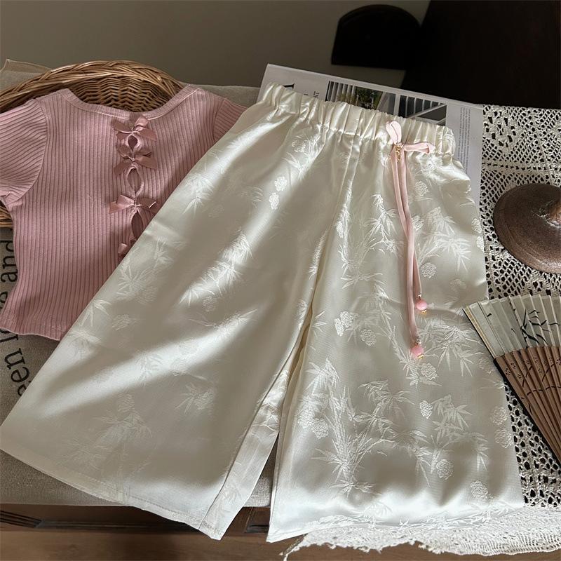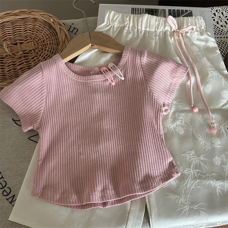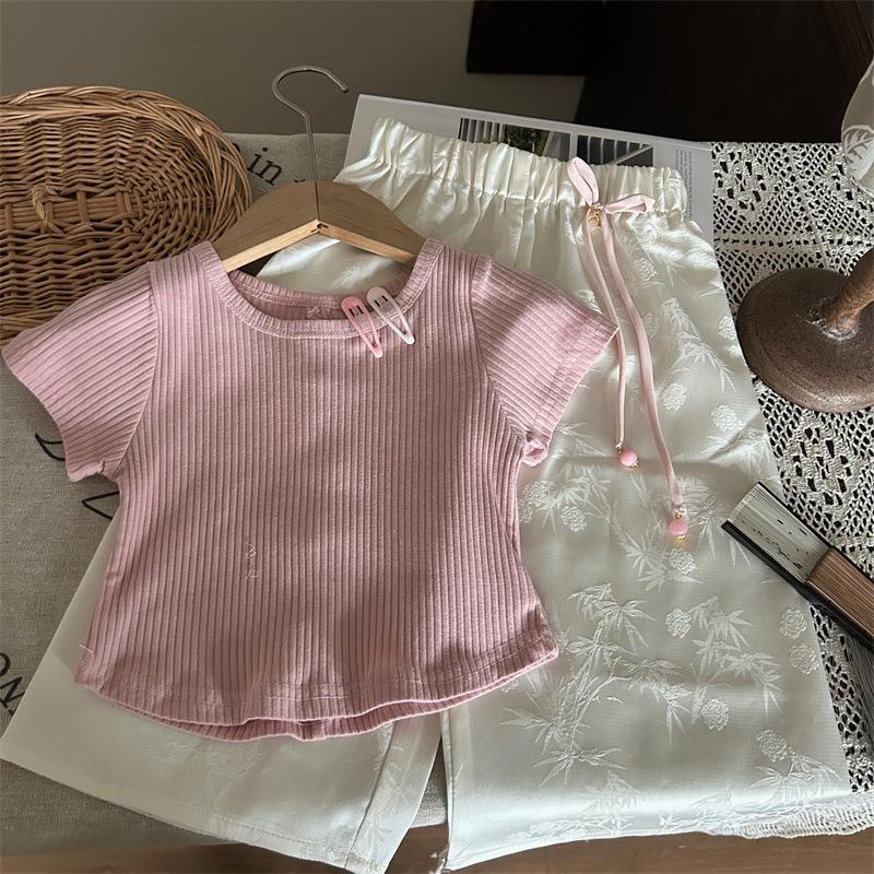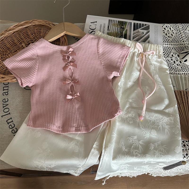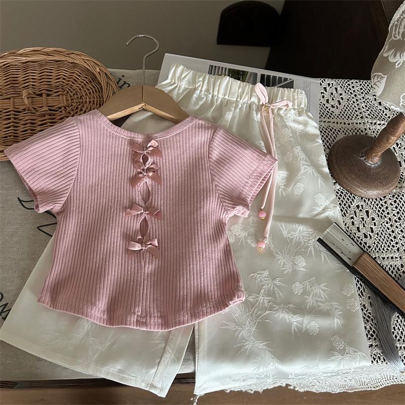 Gran Venta No Reembolsable y No Intercambiable [Pedido por Racionalidad] Verano Niñas Recorte Lazo Camiseta Manga Corta + Pantalones Estilo Chino