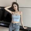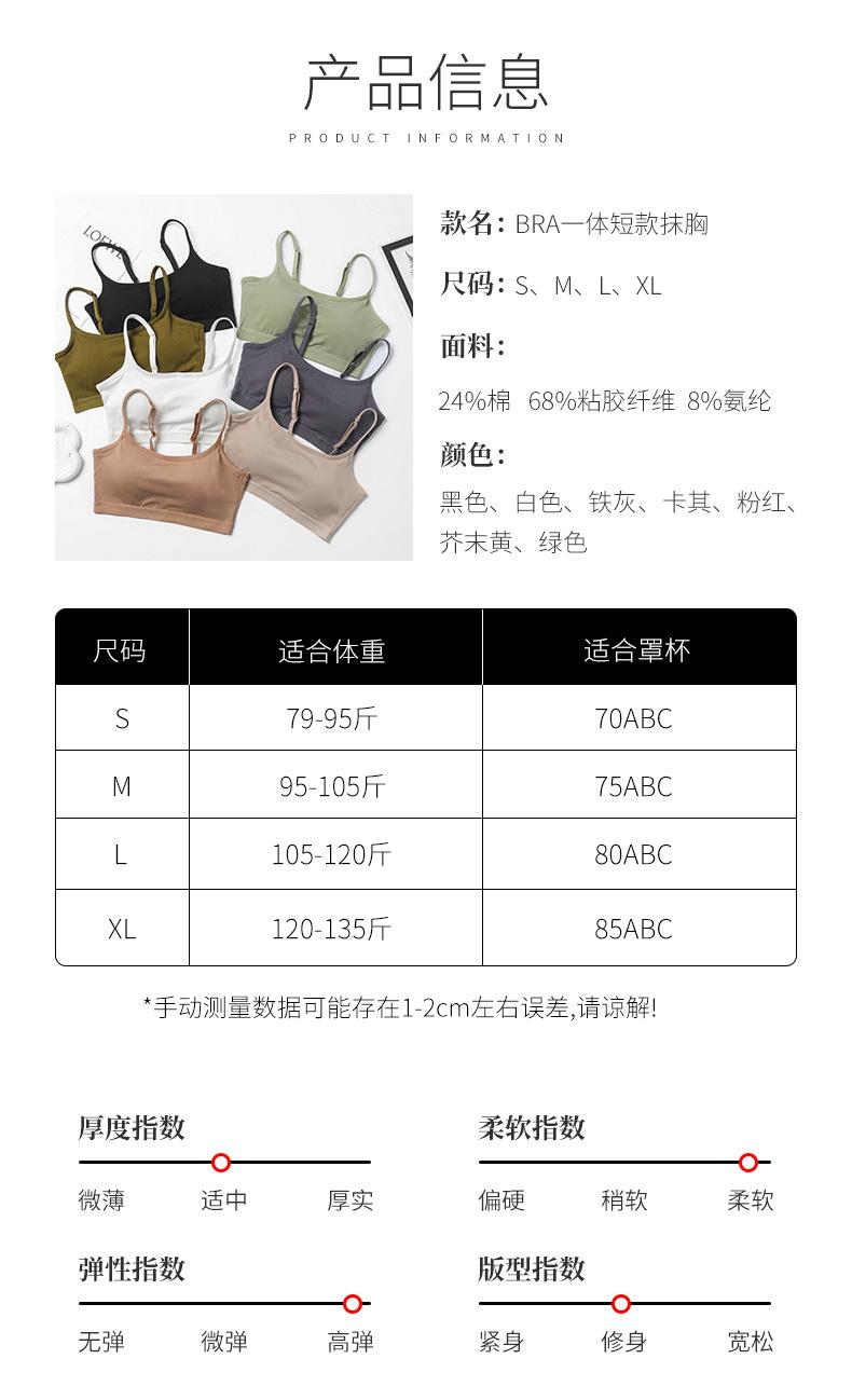 Sujetador de una pieza con almohadilla para el pecho para niña, sin tirantes, con tirantes ajustables en el pecho, sujetador corto de media tira, ropa interior para mujer