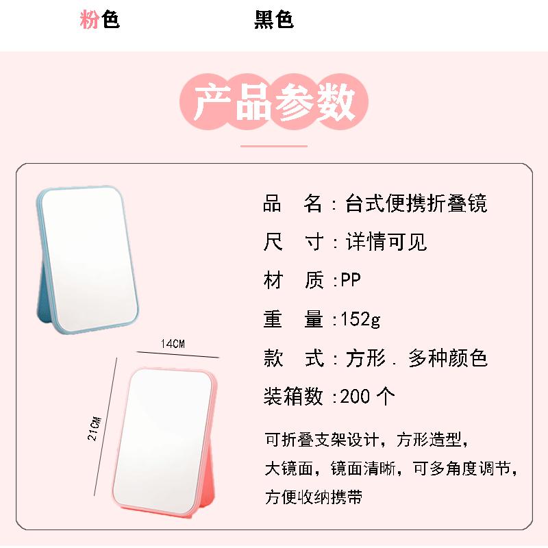 | Espejo de maquillaje de alta definición de un solo lado, espejo de tocador de mesa colorido, espejo cuadrado grande plegable y portátil tipo princesa. |