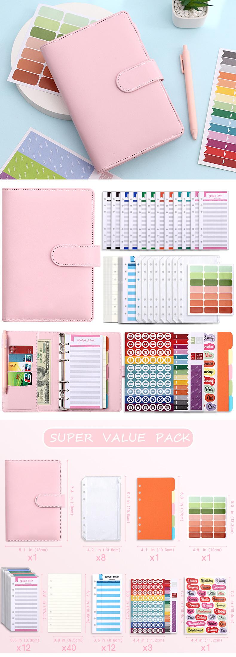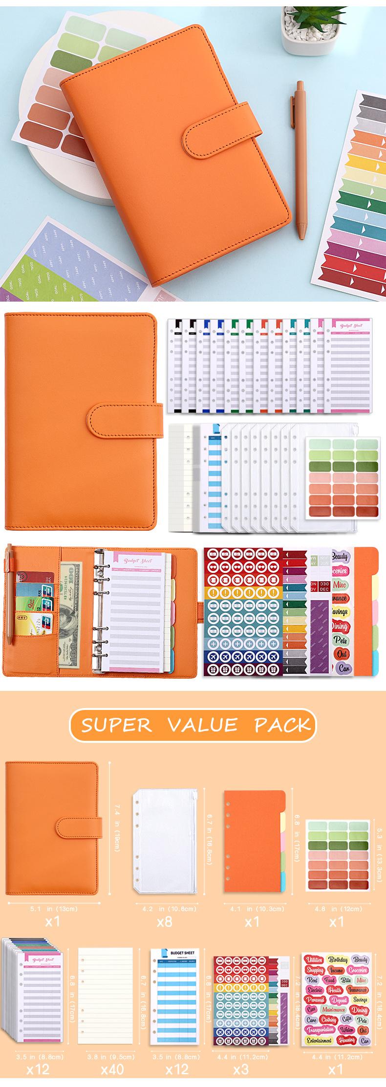 Cuaderno de contabilidad de hojas sueltas de cuero Macaron A6PU, venta al por mayor, planificador financiero creativo de presupuesto de efectivo, libro de mano