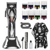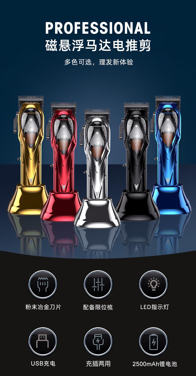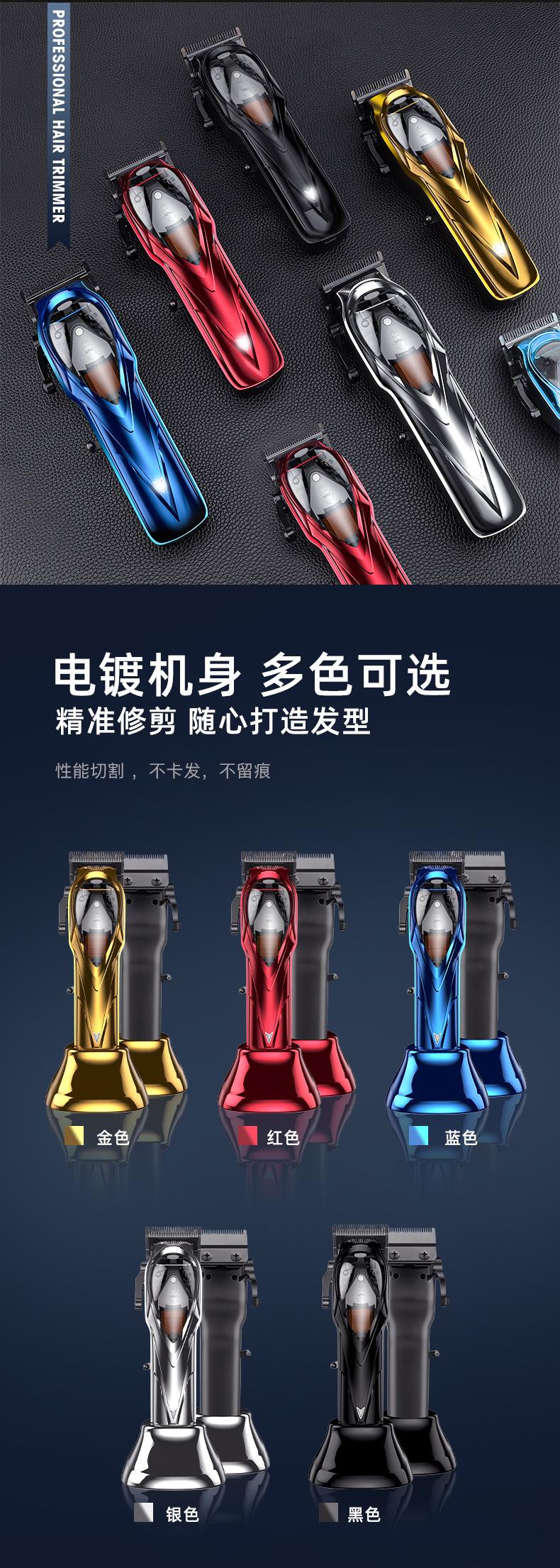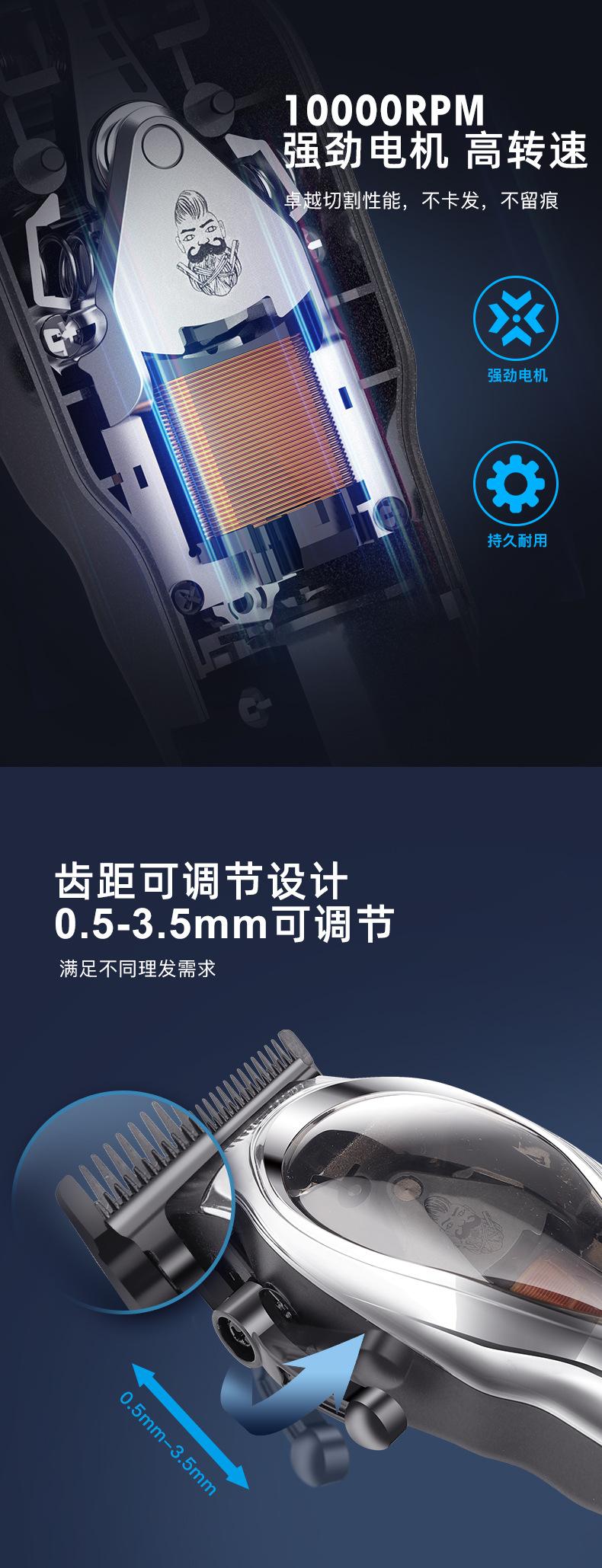 Accesorios del producto: host + cable de carga USB + base de carga + peine guía * 8 (1.5 3 4.5 6 10 13 19 25mm) + cepillo de limpieza + manual en inglés + peine + paño + aceite lubricante de 3 ml;