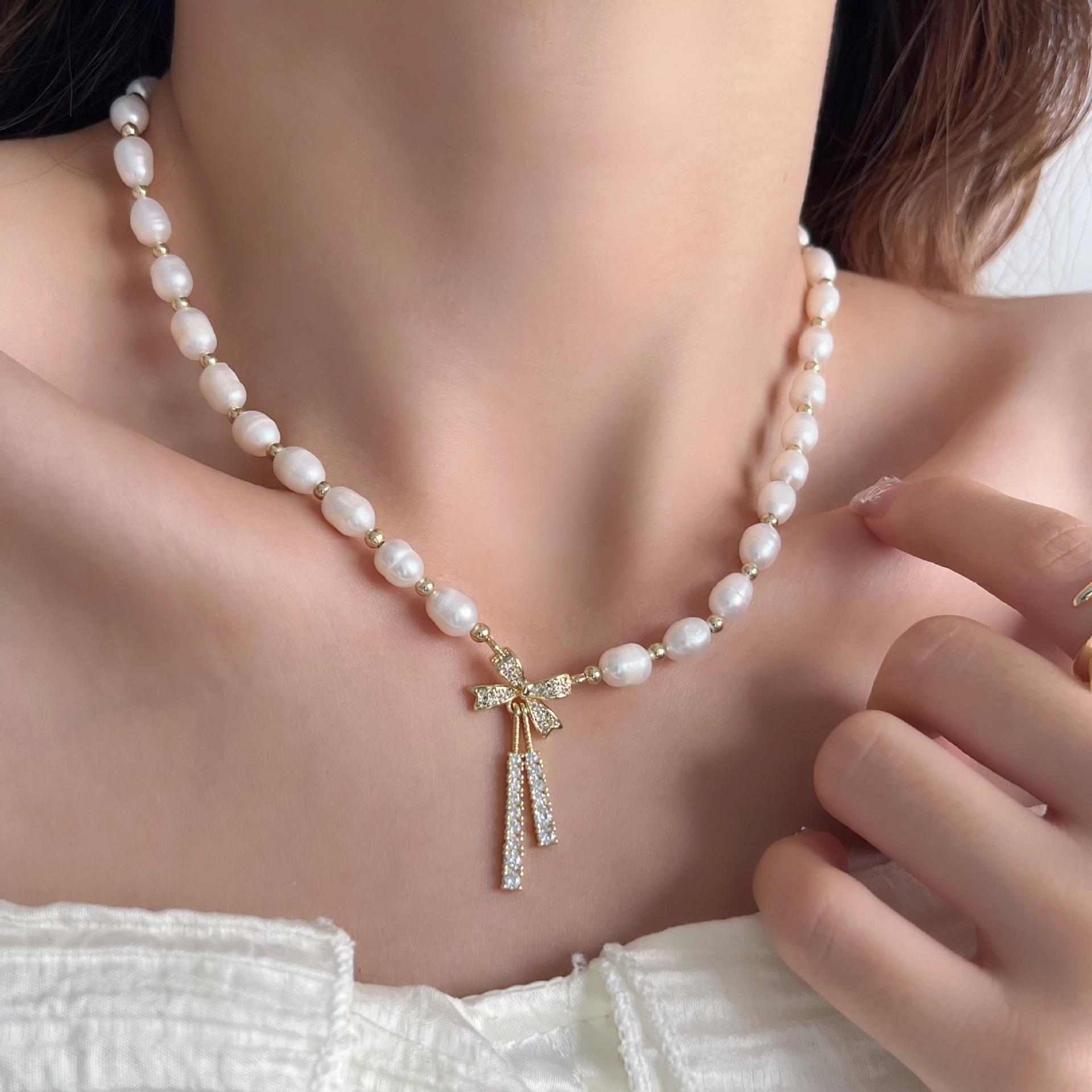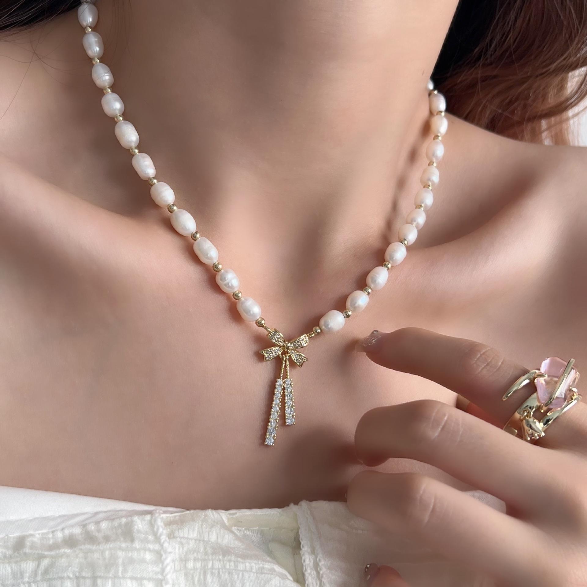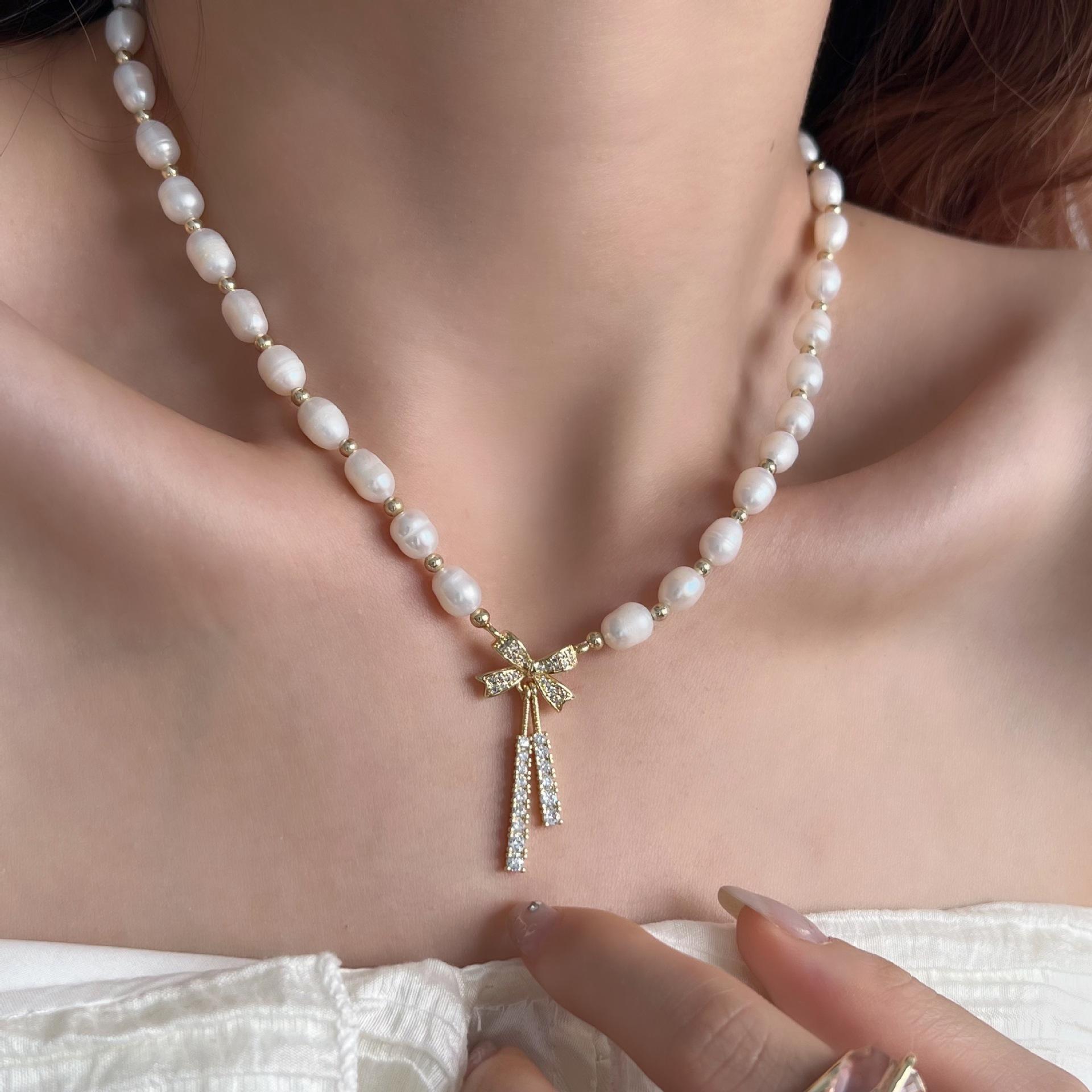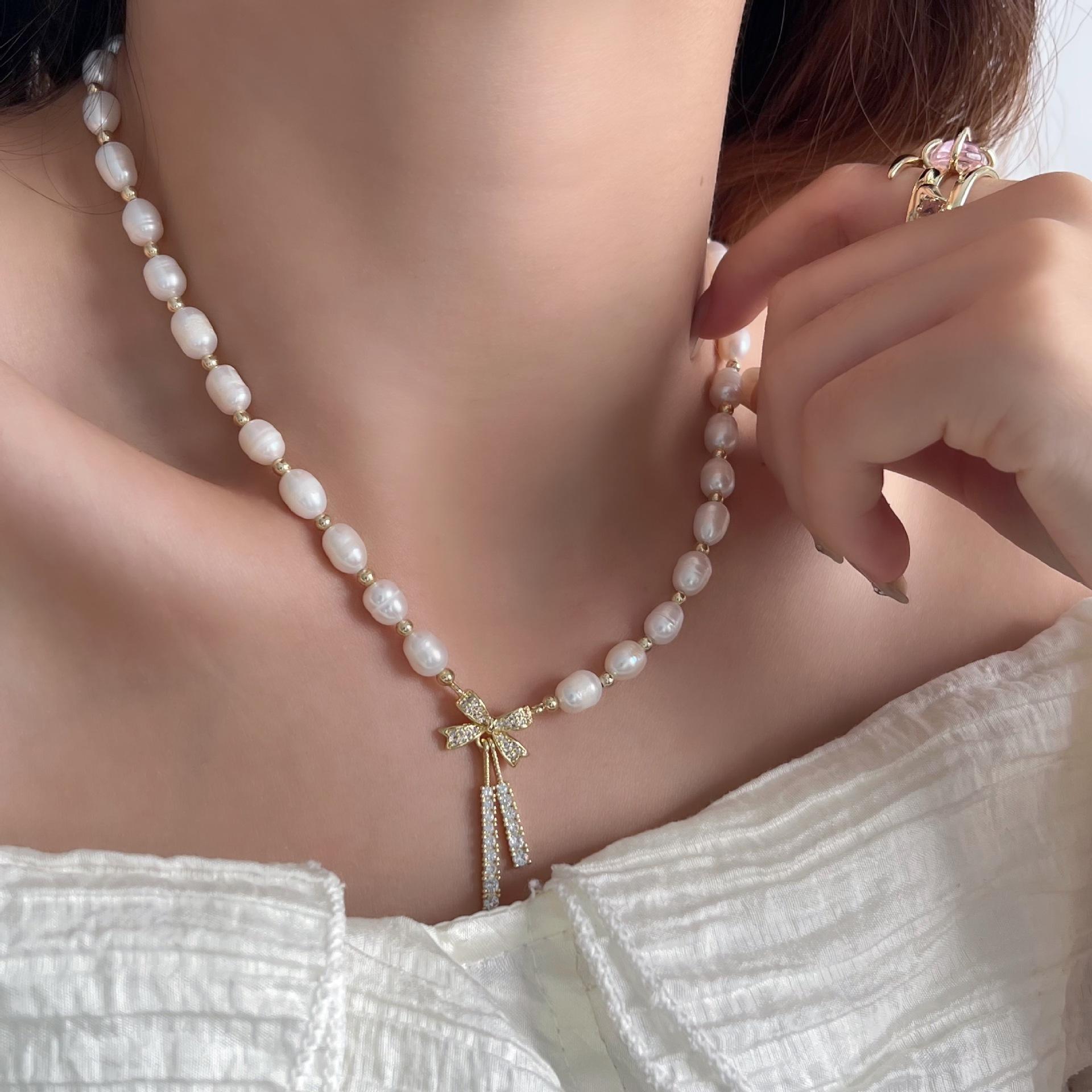 Collar de perlas naturales de agua dulce, ligero, lujoso, con lazo de nicho, cadena de clavícula, diseño de nicho, collar de alta calidad.