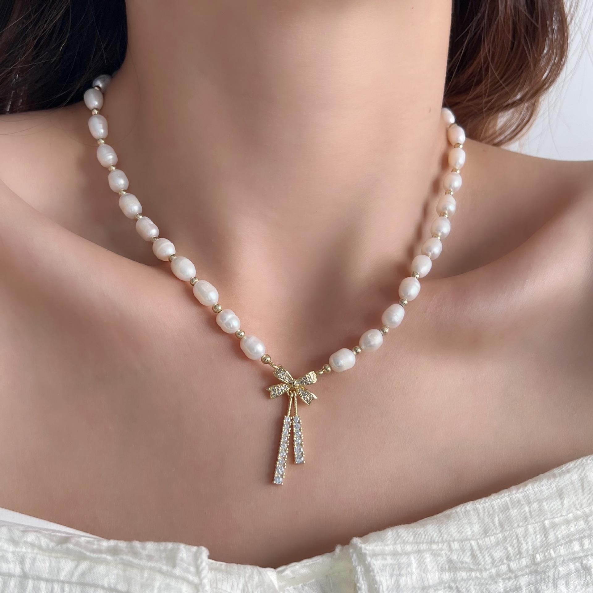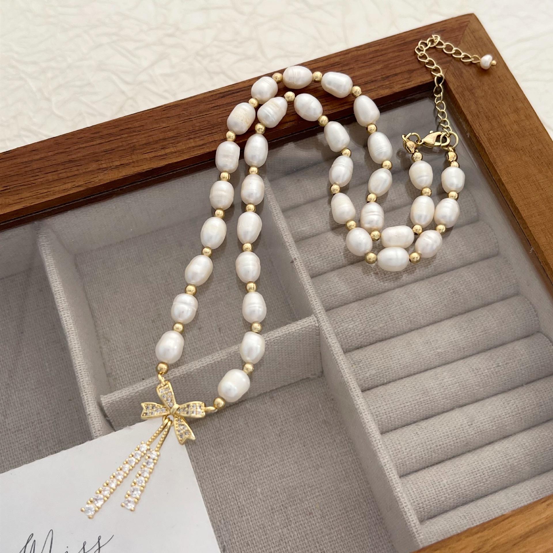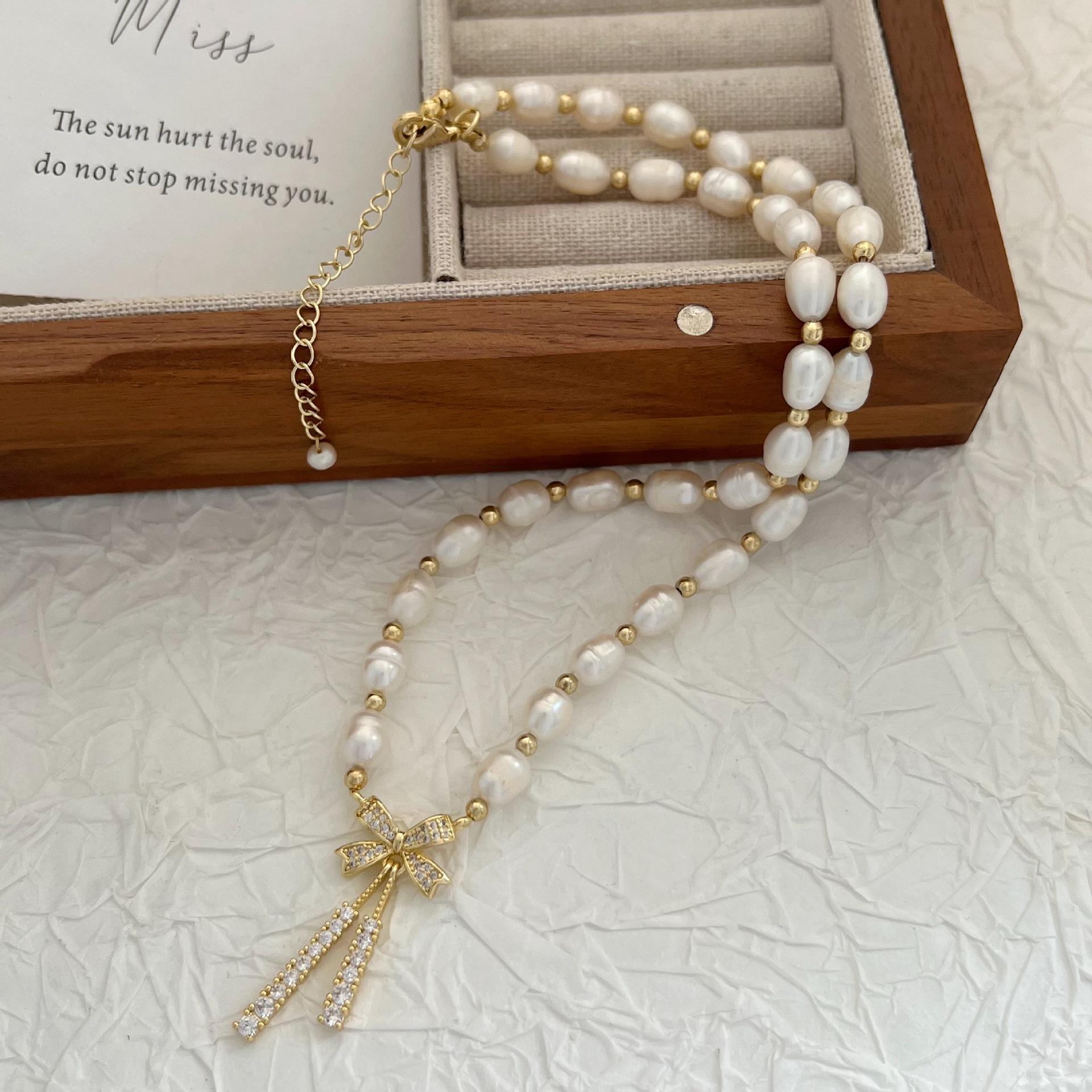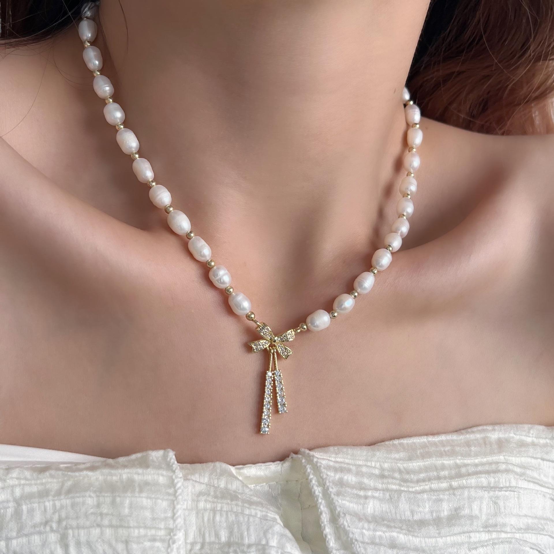 Collar de perlas naturales de agua dulce, ligero, lujoso, con lazo de nicho, cadena de clavícula, diseño de nicho, collar de alta calidad.