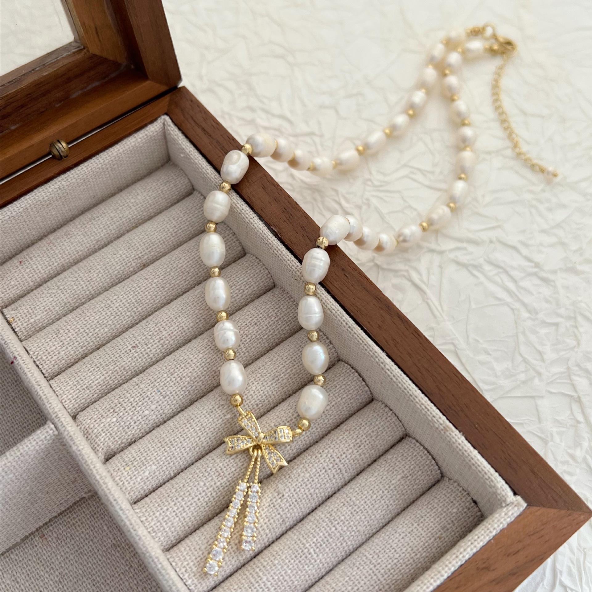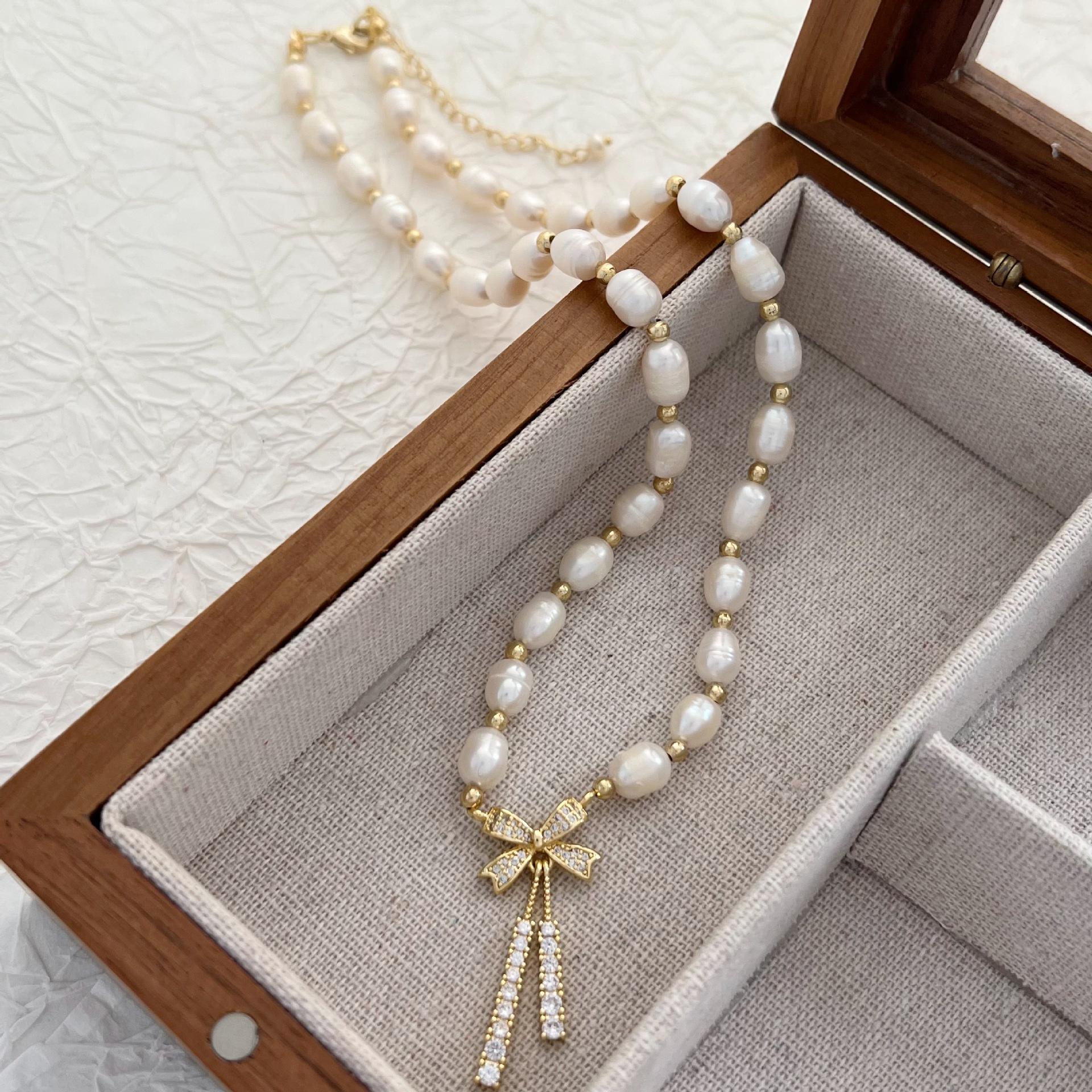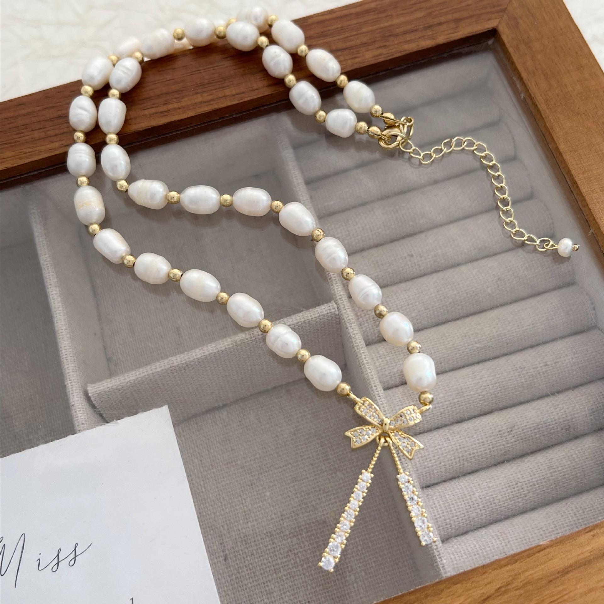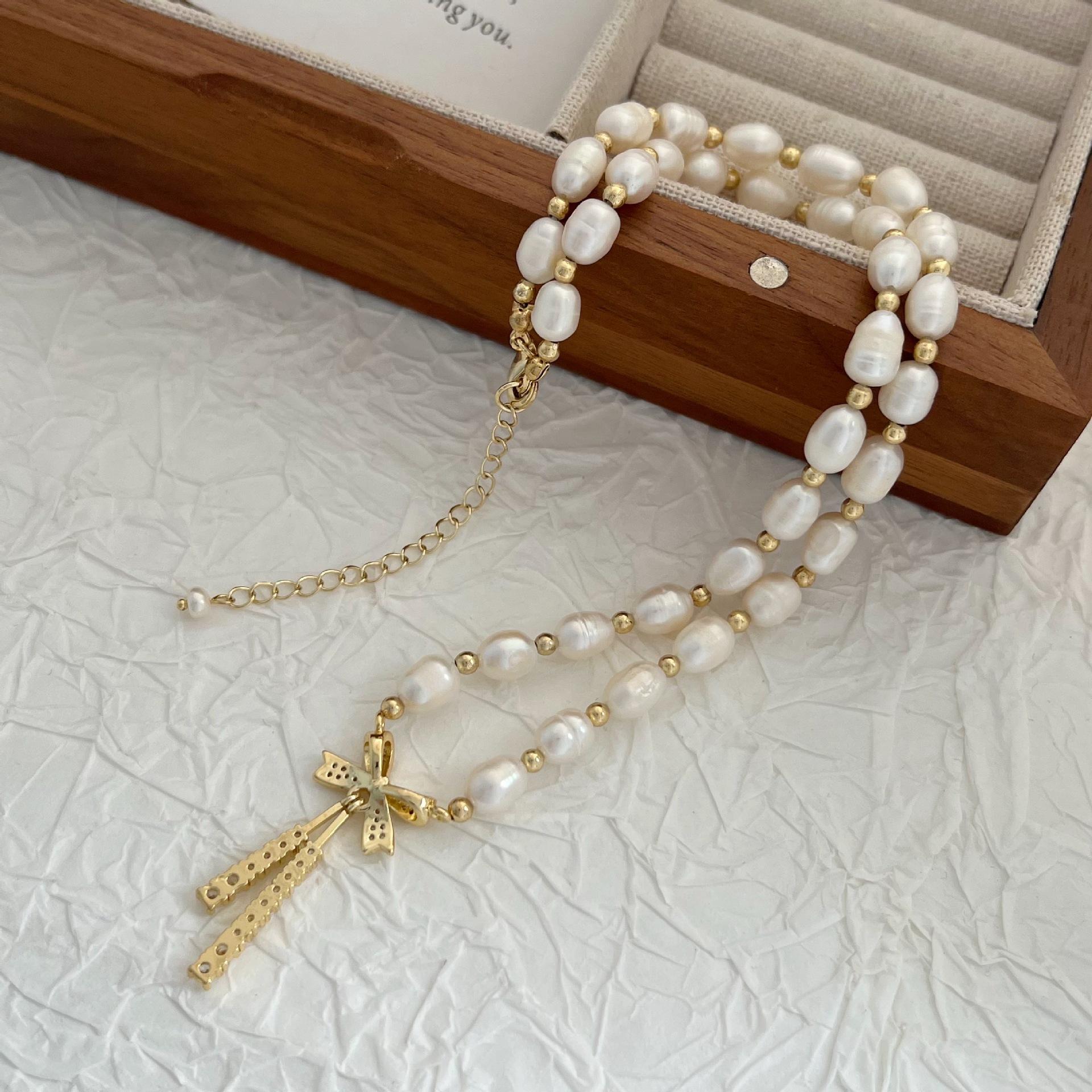 Collar de perlas naturales de agua dulce, ligero, lujoso, con lazo de nicho, cadena de clavícula, diseño de nicho, collar de alta calidad.