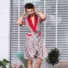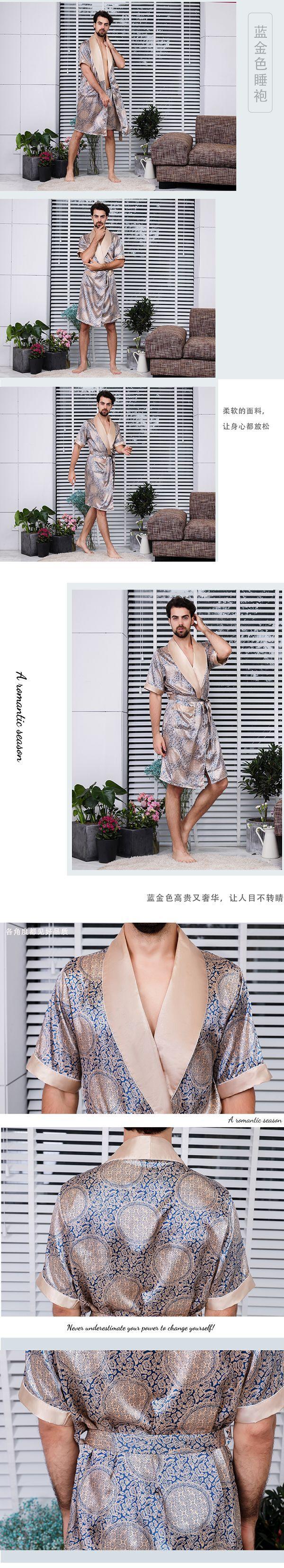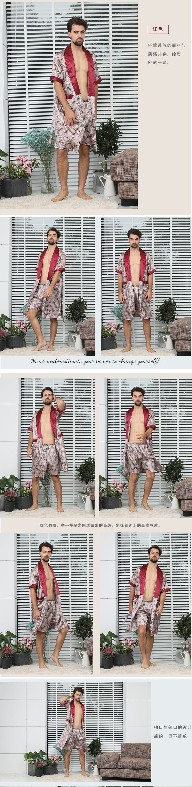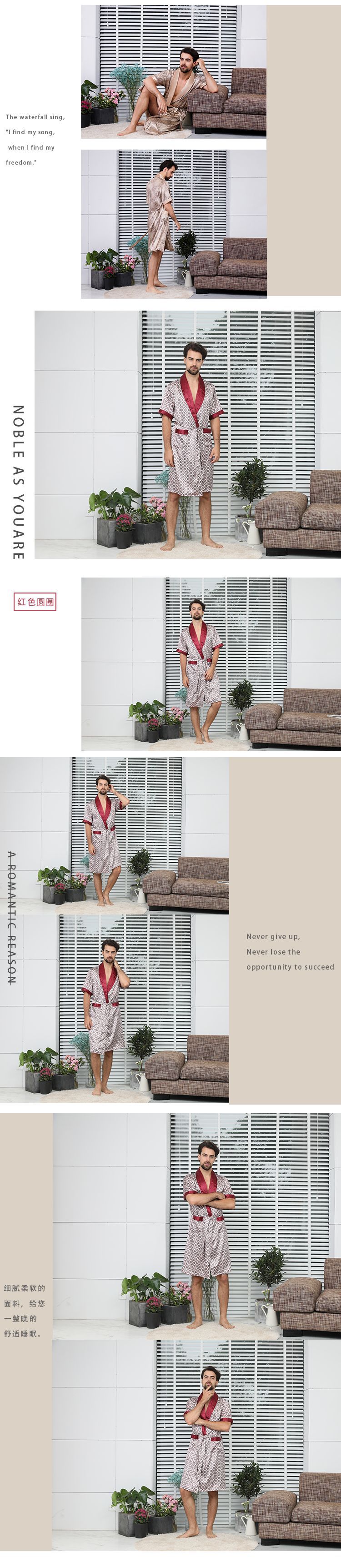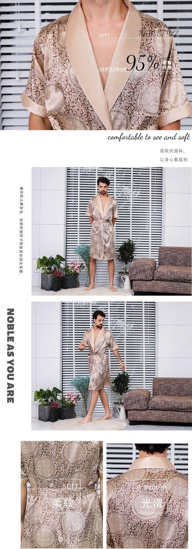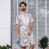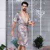 Camisón de Hombre Verano Delgado Camisón de Seda para Hombre Camisón de Seda de Hielo para Hombre Camisón Largo de Verano para Hombre