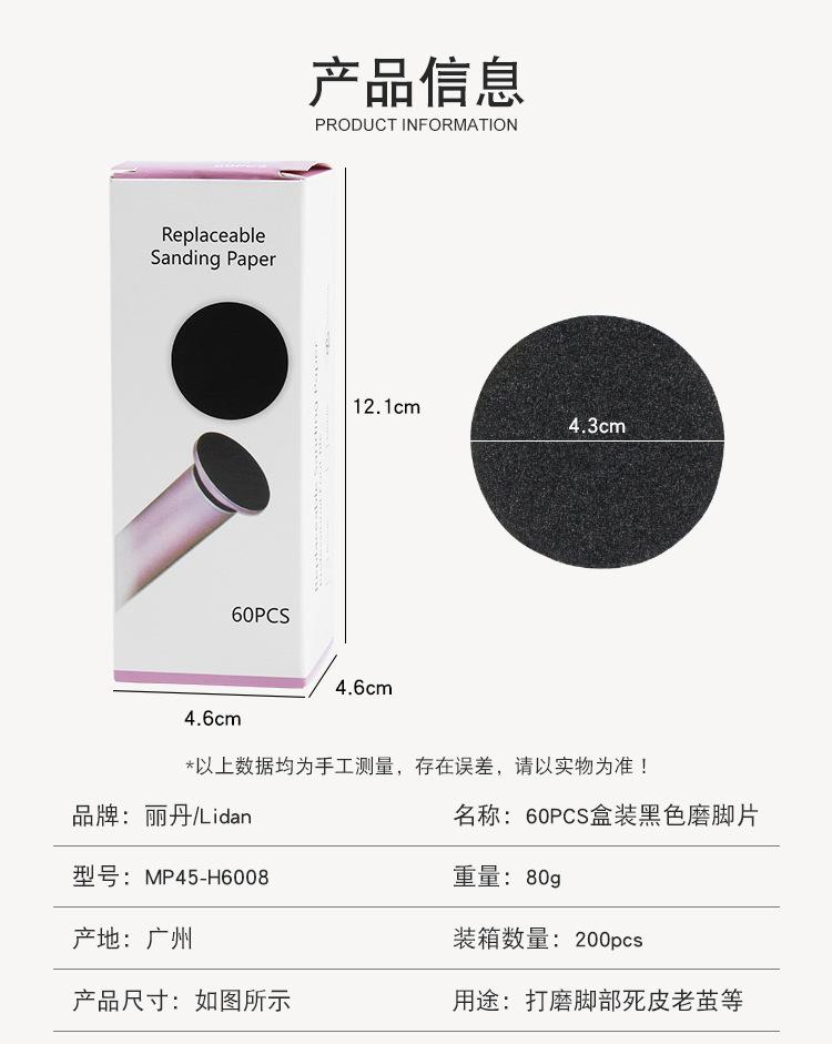 MP45-HZ6008-foot grinder replacement sand/60PCS boxed black No. 80