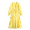 Vestido francés retro de manga larga con escote en V profundo y cintura alta, falda acampanada para mujer, primavera y verano 2025, moda transfronteriza, nuevo estilo.