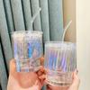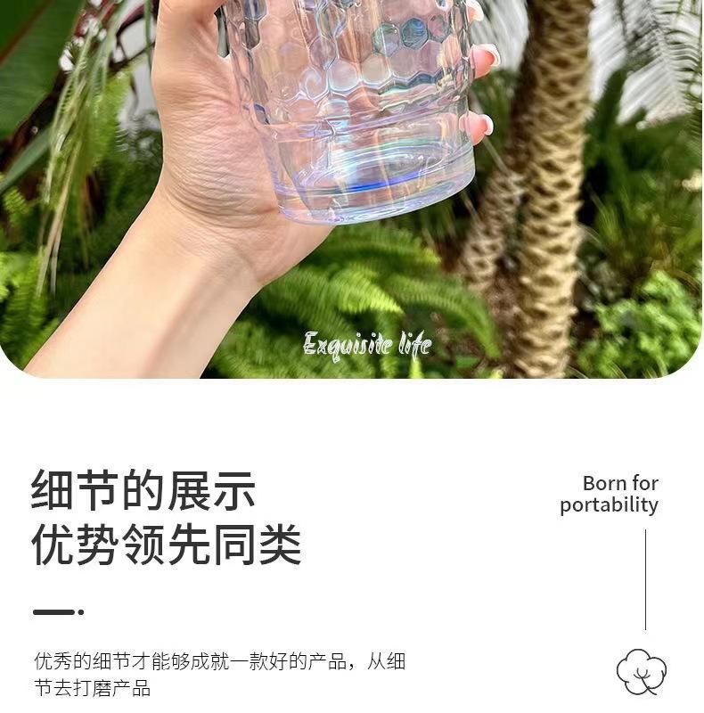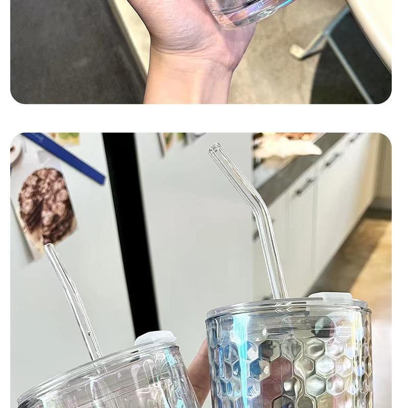 Vaso de bambú de verano de estilo ins de vidrio colorido de alta apariencia, vaso con pajita, vaso para café, vaso para agua, vaso anti-escaldaduras