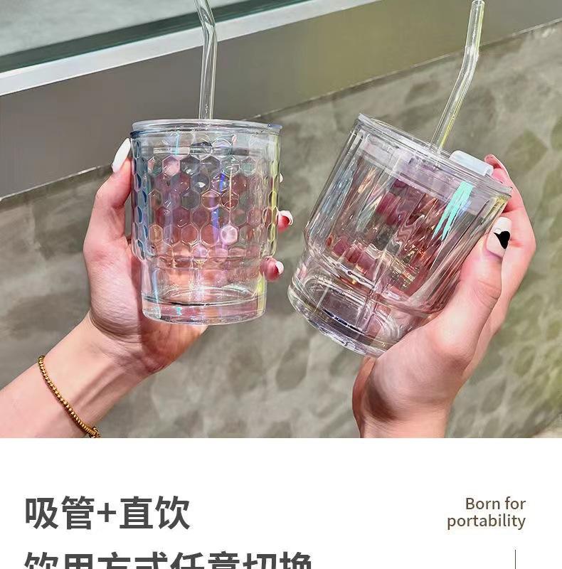 Polka dot + lid + glass straw, Twill + lid + glass straw, Polka dot + lid + glass straw + independent color bo...