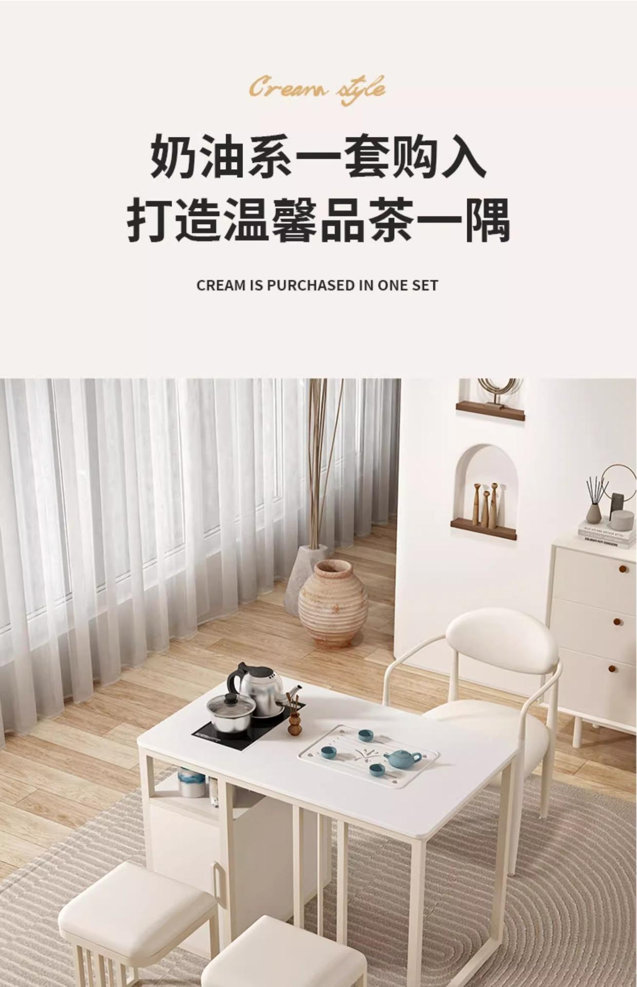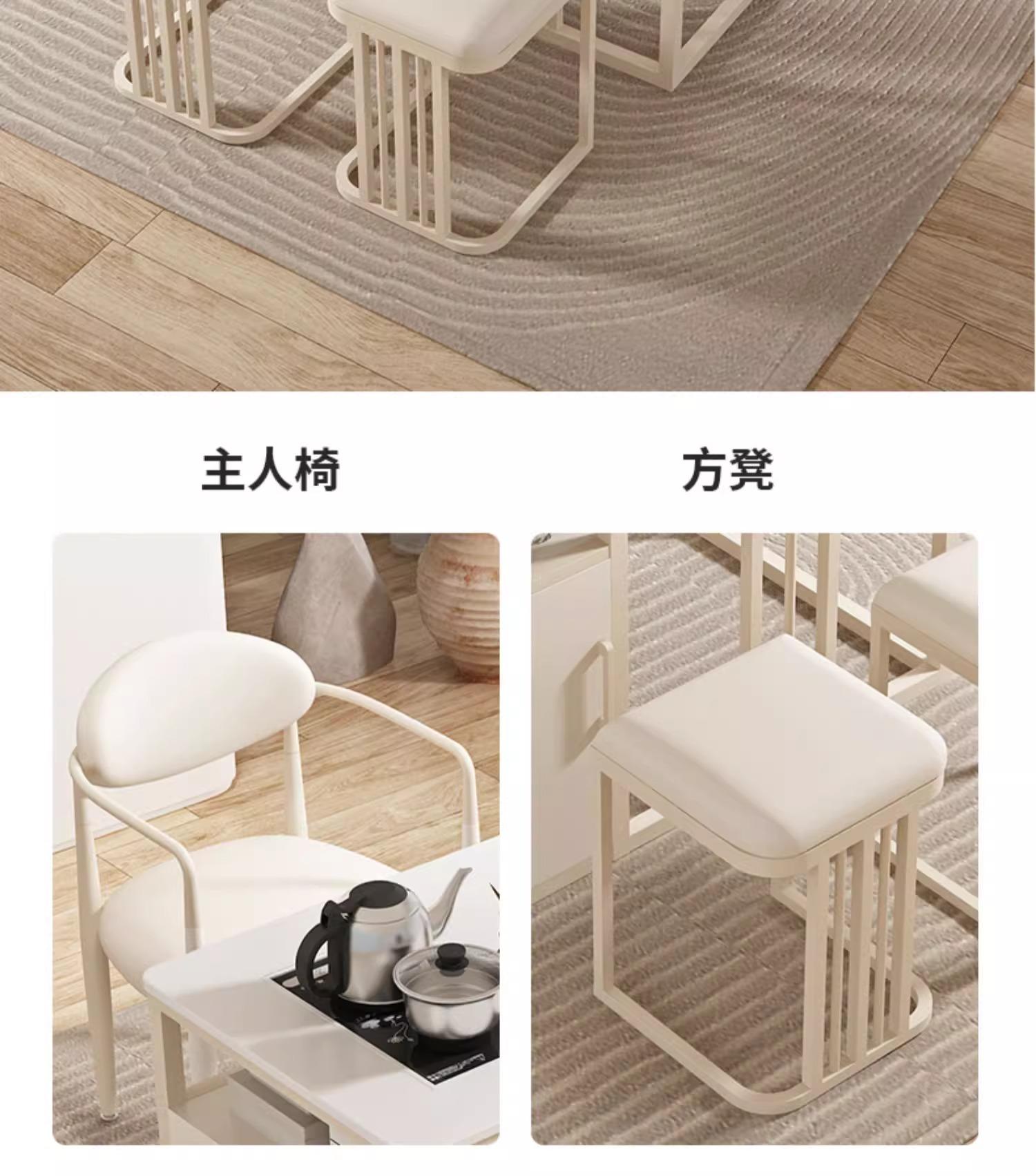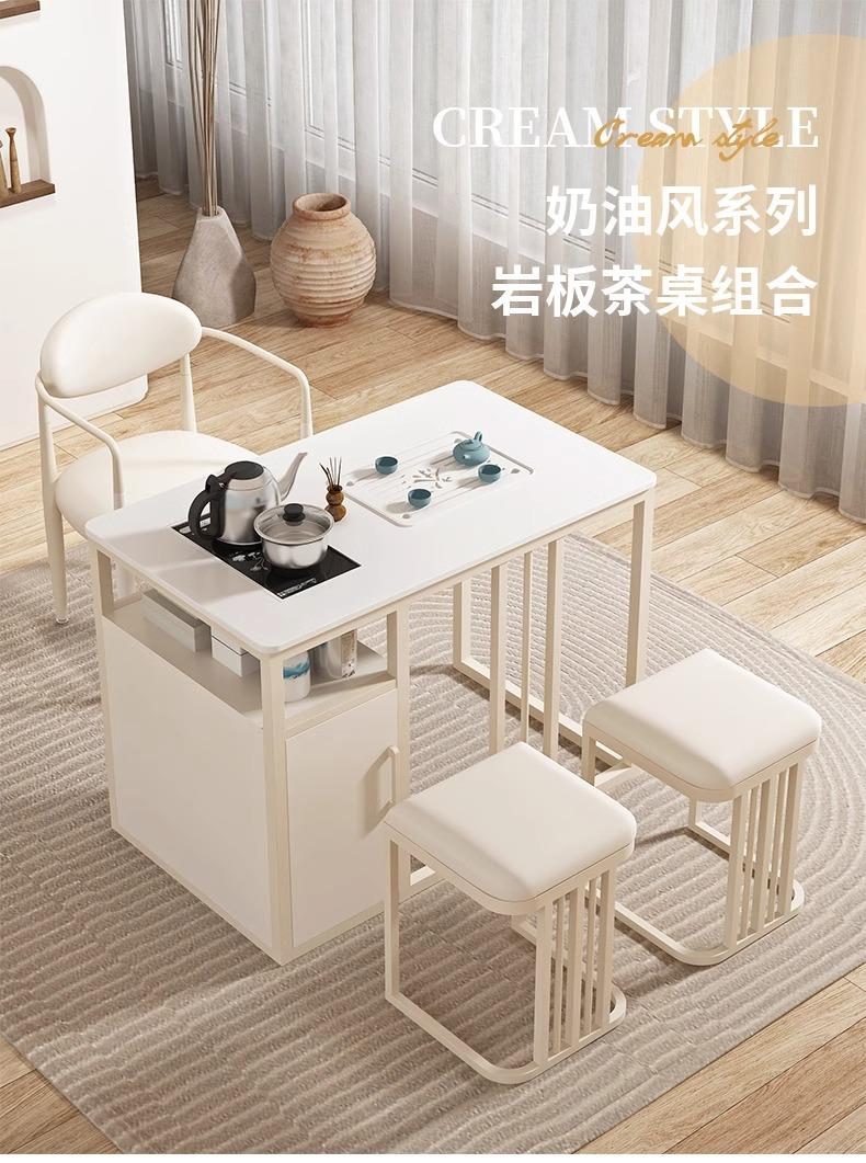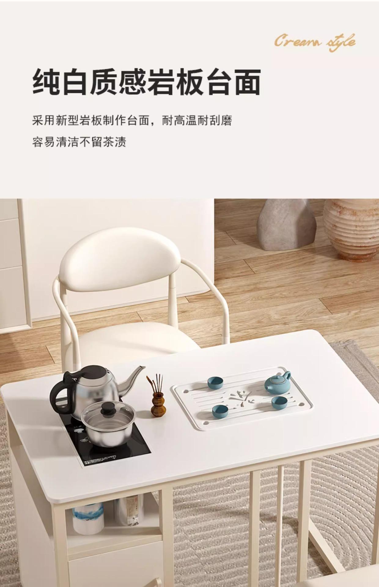 Mesa de té y silla para balcón estilo roca color crema, moderna y sencilla, para apartamento pequeño, con tetera integrada para el hogar.