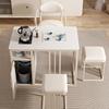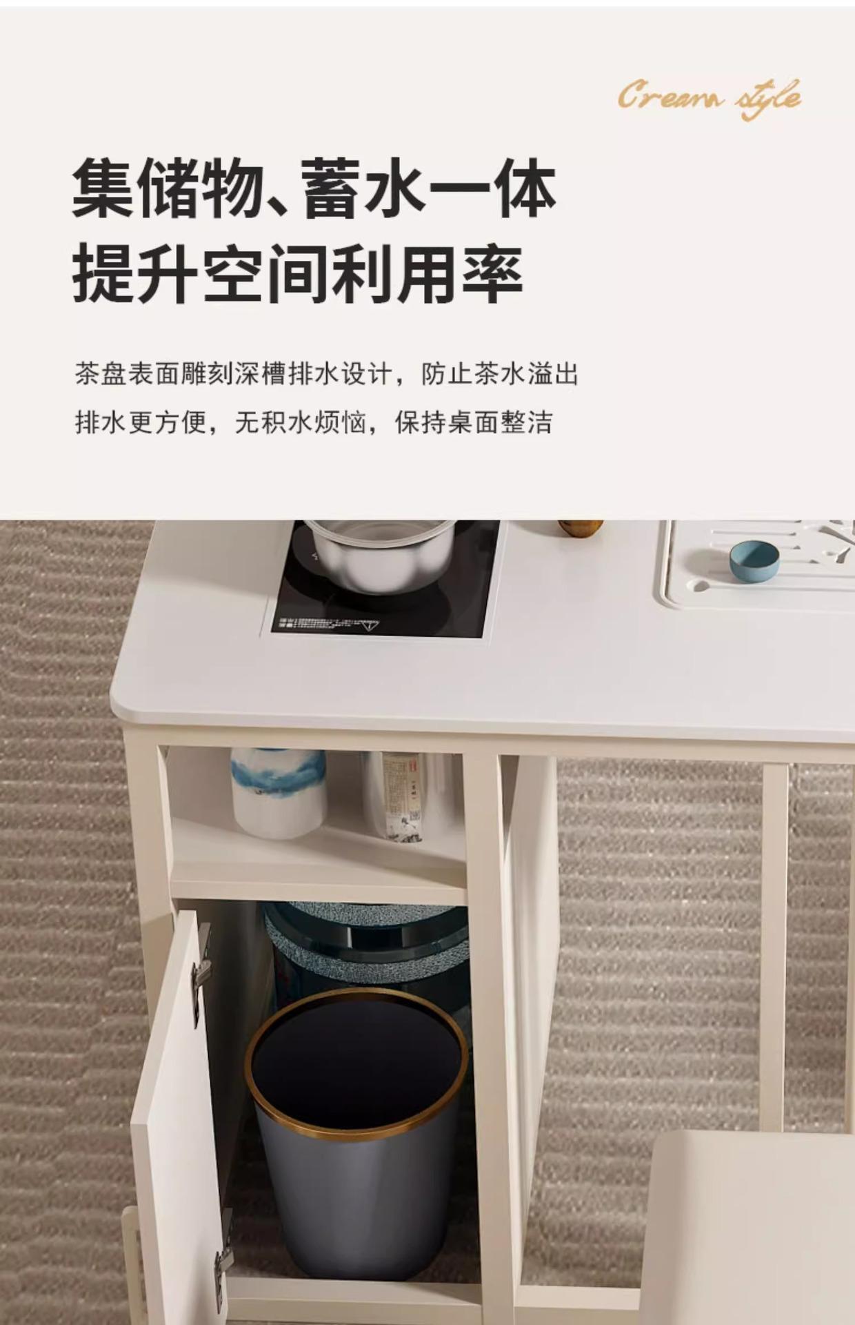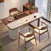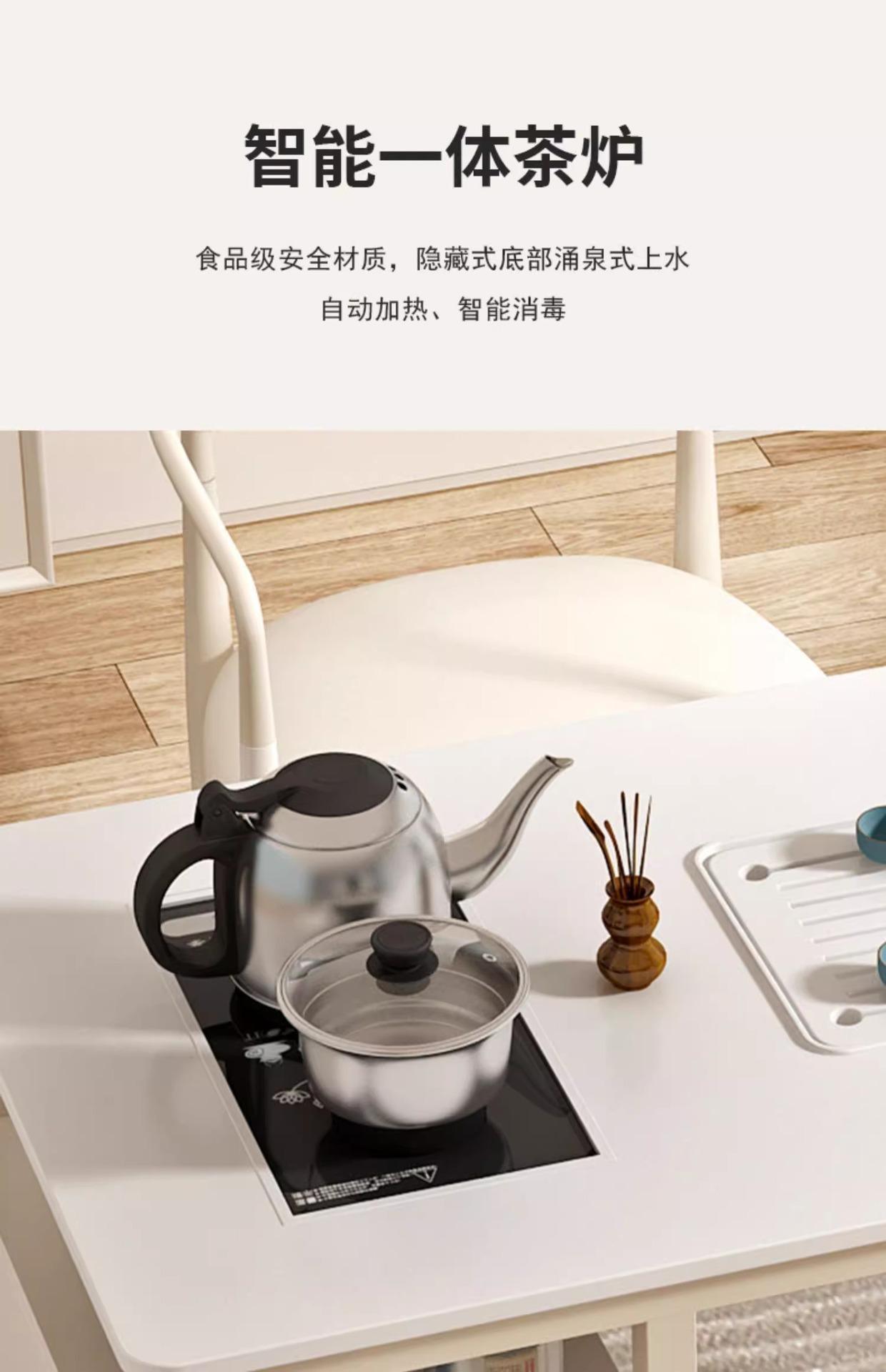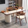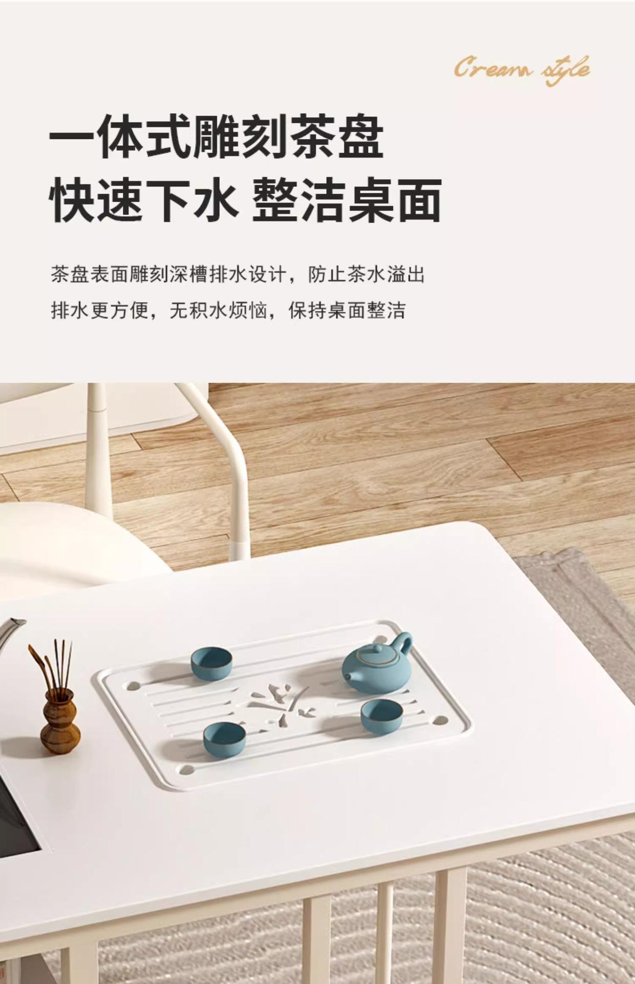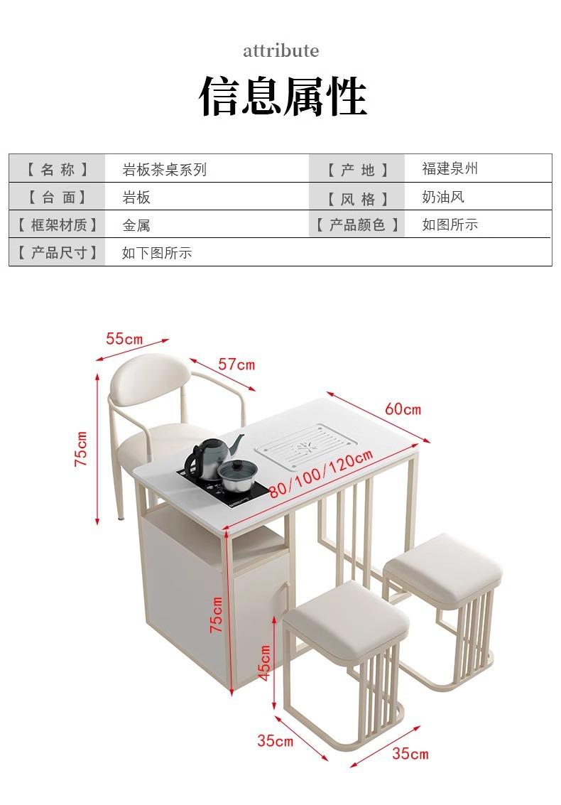 Mesa de té y silla para balcón estilo roca color crema, moderna y sencilla, para apartamento pequeño, con tetera integrada para el hogar.