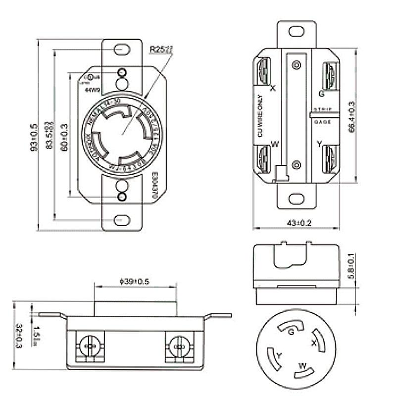 Toma de corriente industrial americana de cuatro orificios antiapagado L14-30R para generador, placa de enchufe para almacenamiento de energía estándar estadounidense