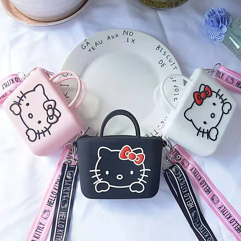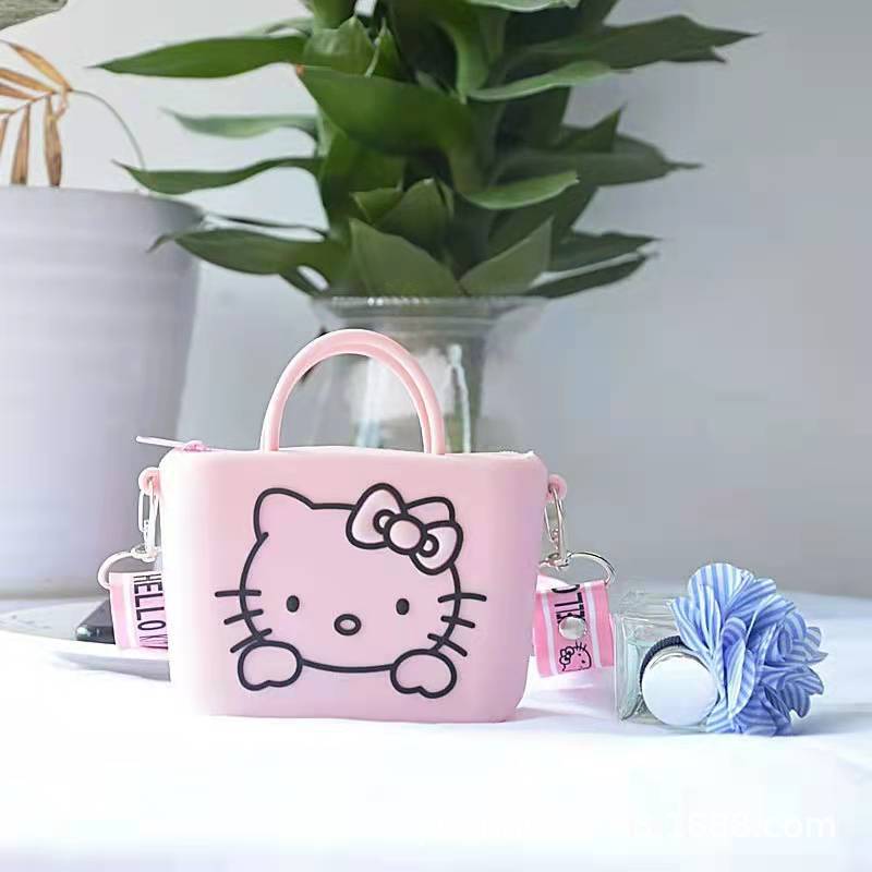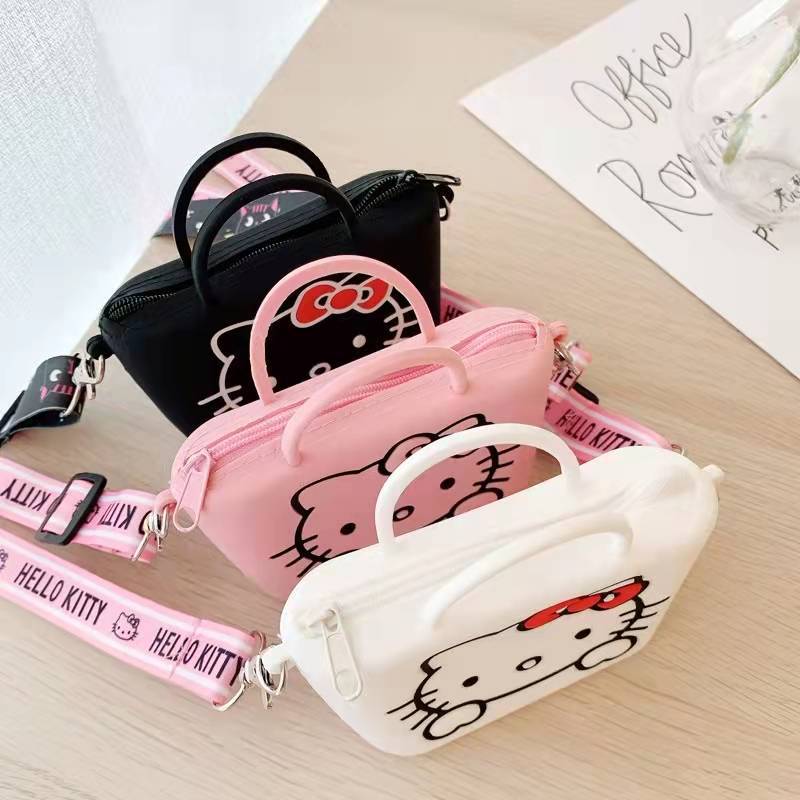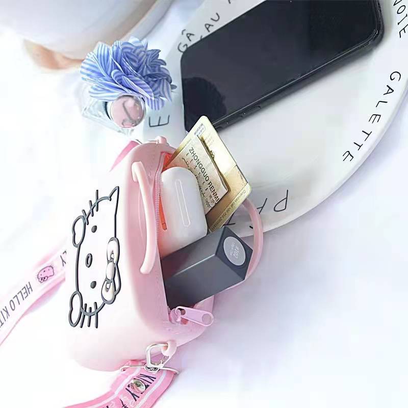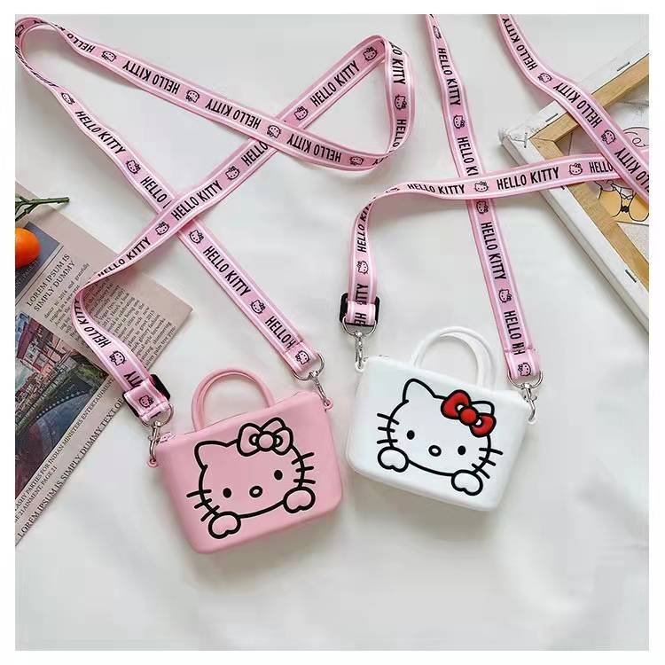Dibujos Animados Lindo Silicona Bolso de Mano Kt Cat Bolso para Niños Mini Bolso de Hombro Bolso Mensajero Monedero para Estudiantes Tarjetero