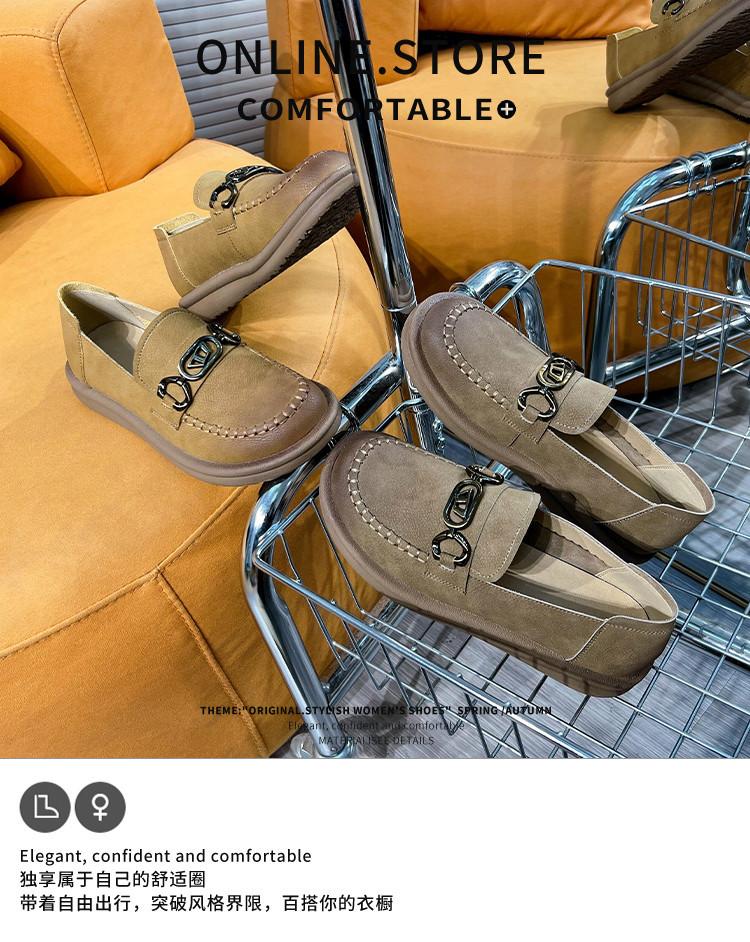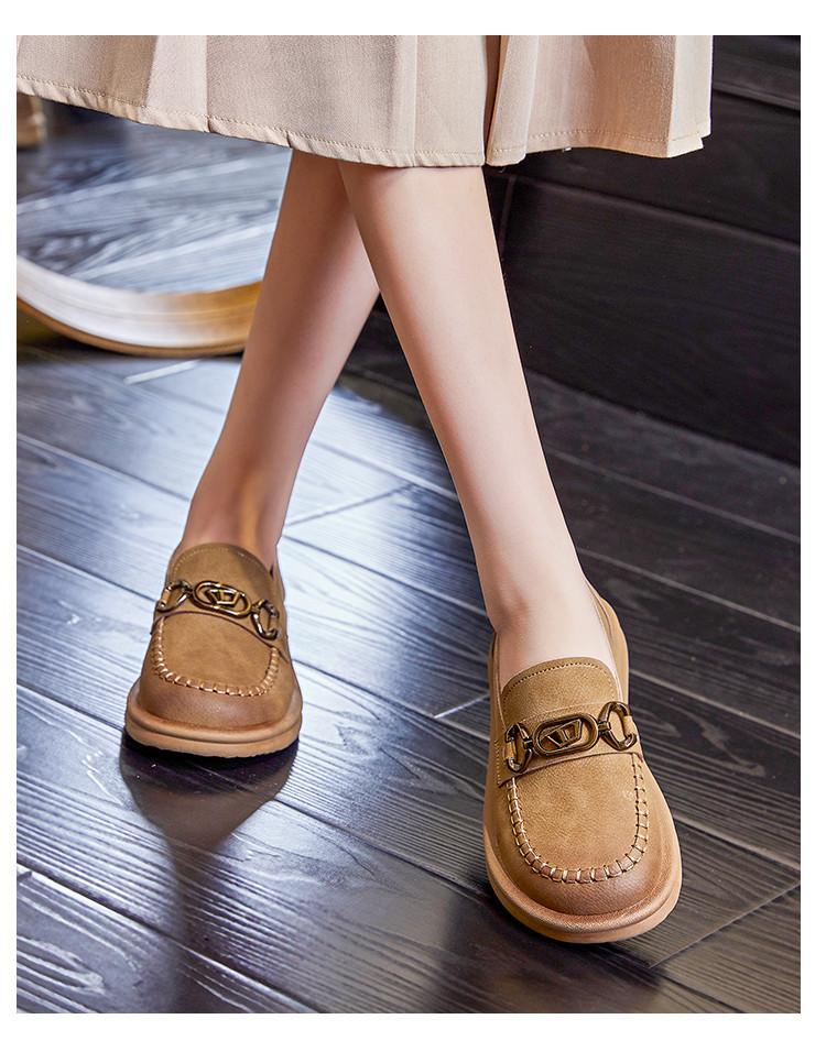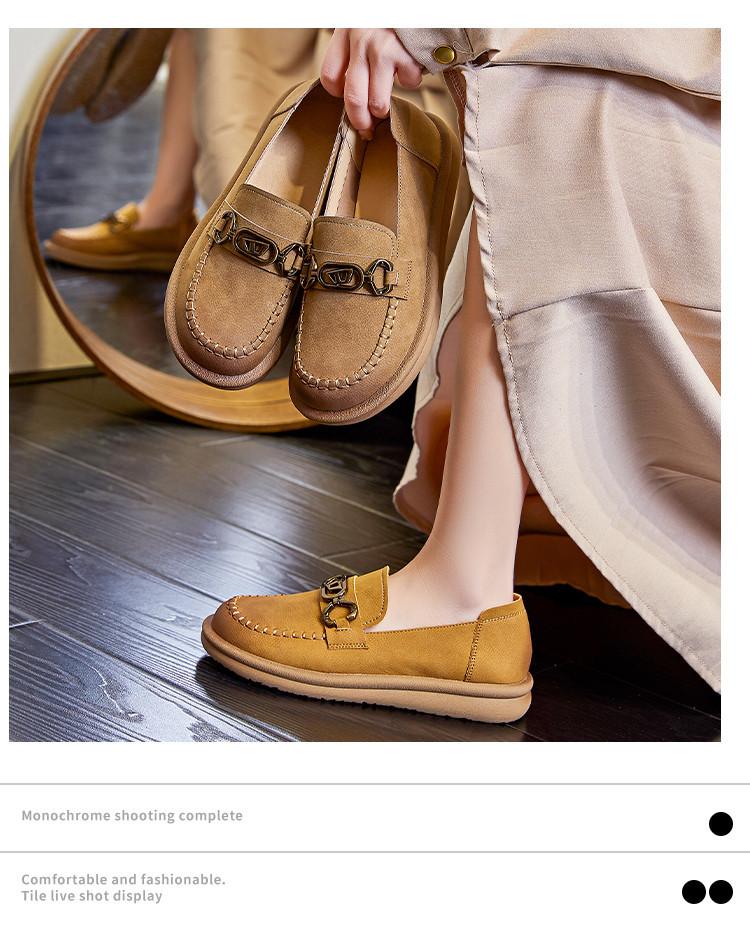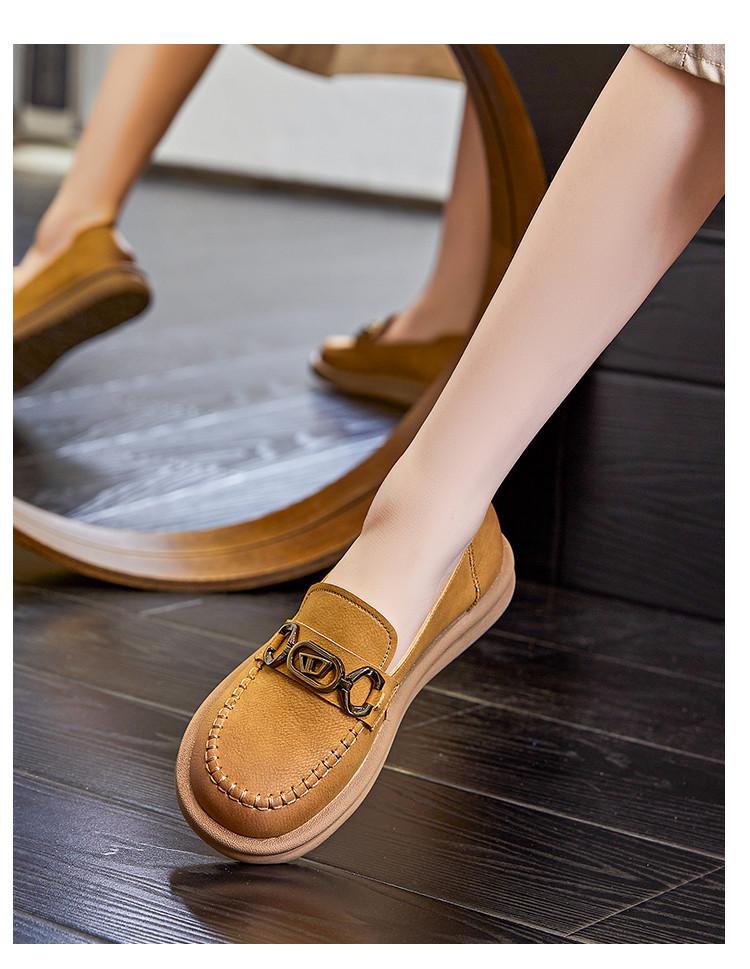 Zapatos de Mujer de Cuero Genuino 2026 Primavera Nuevo Estilo Zapatos de Cuero Bajos Casuales Versátiles Zapatos de Moda Estilo Chanel para Mujer