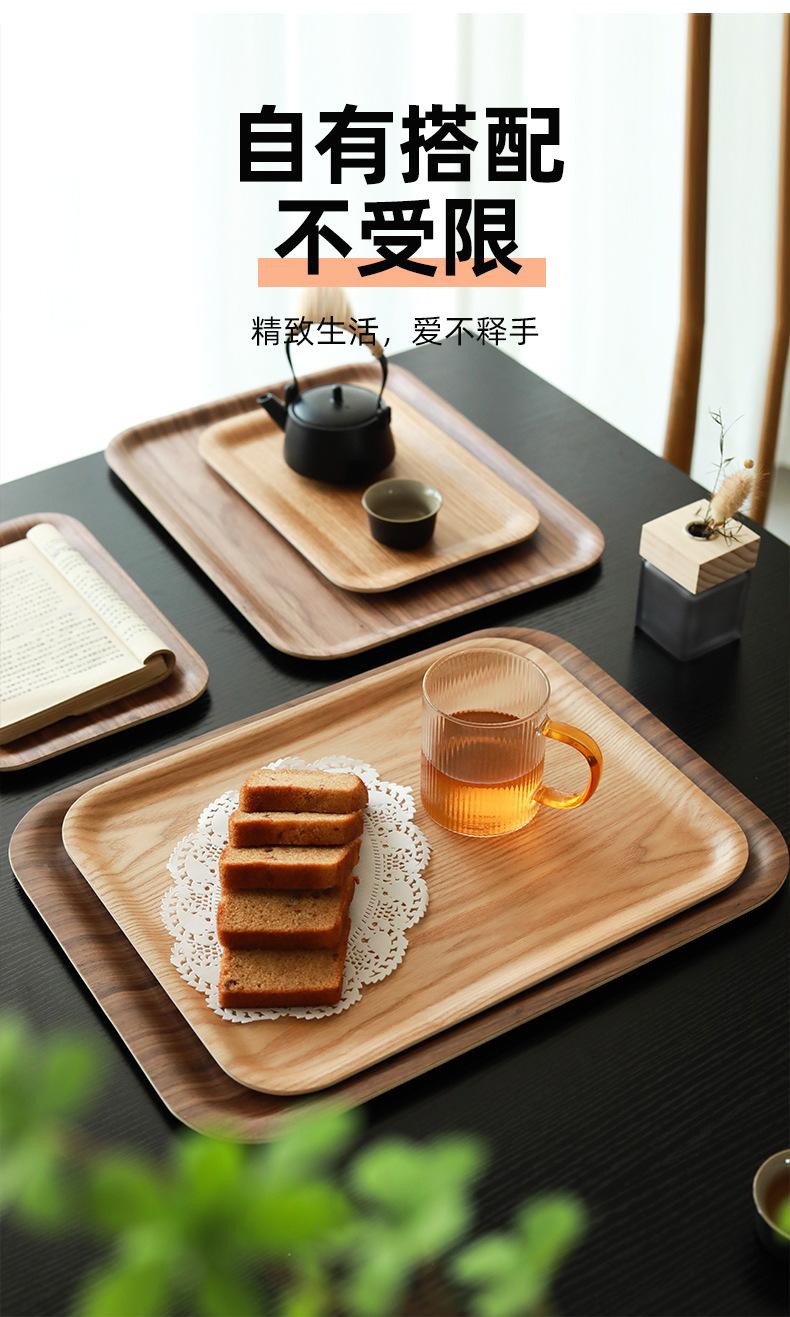 Bandeja de Madera Nogal Negro Ceniza Bandeja de Madera Japonesa para Hornear Pan Bandeja para Frutas Bandeja para Té Mesa de Centro para Sala de Estar